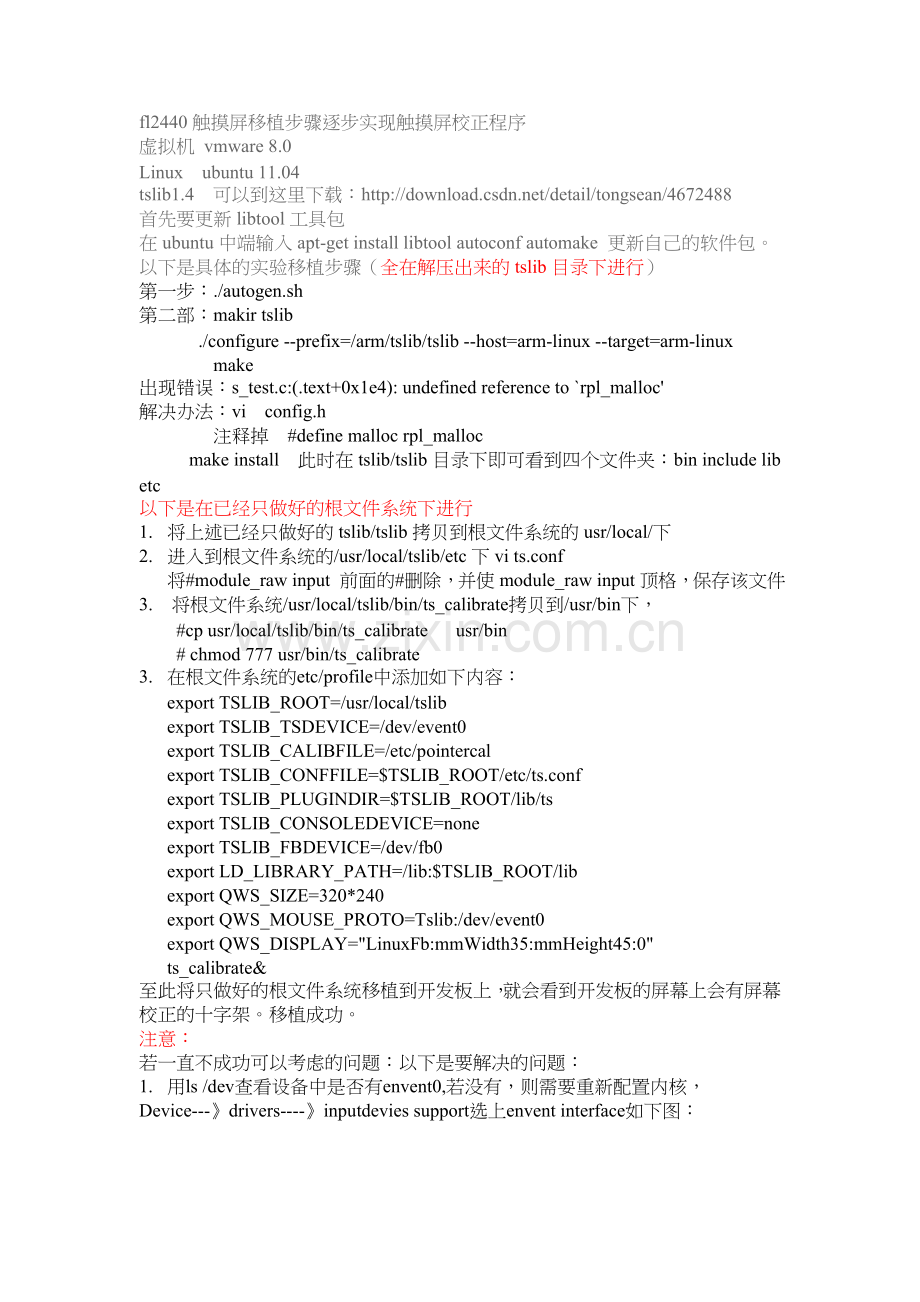 以下是具体的实验移植步骤(全在解压出来的tslib目录下进行)
