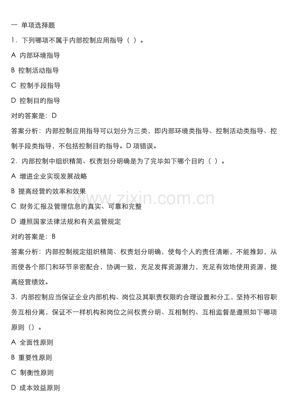 答案分析:内部控制旳控制主体是董事会、经理阶层和其他员工。