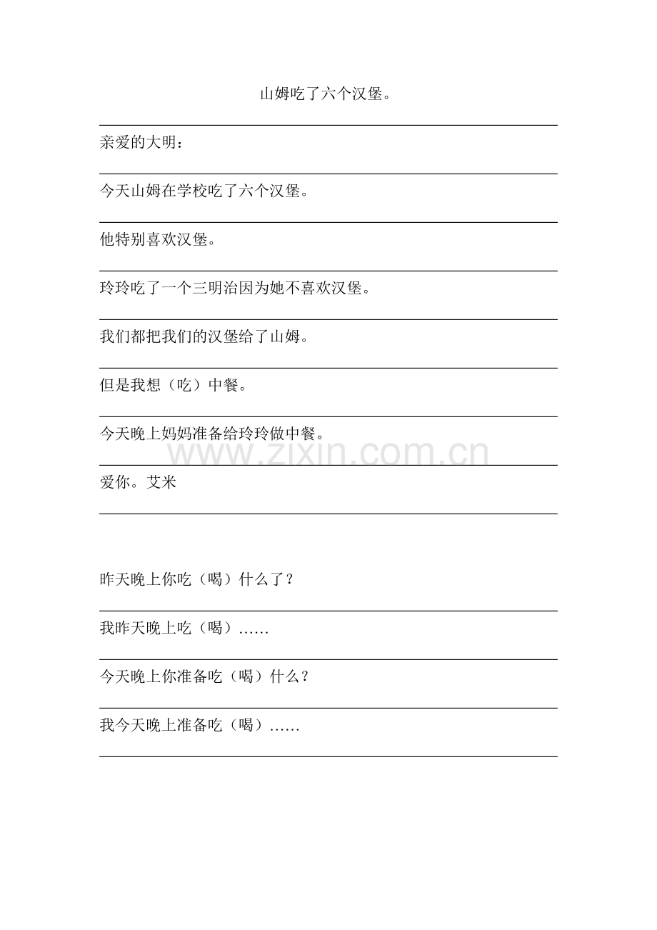 玲玲吃了一个三明治因为她不喜欢汉堡。