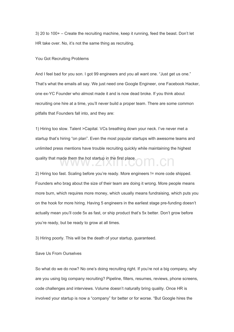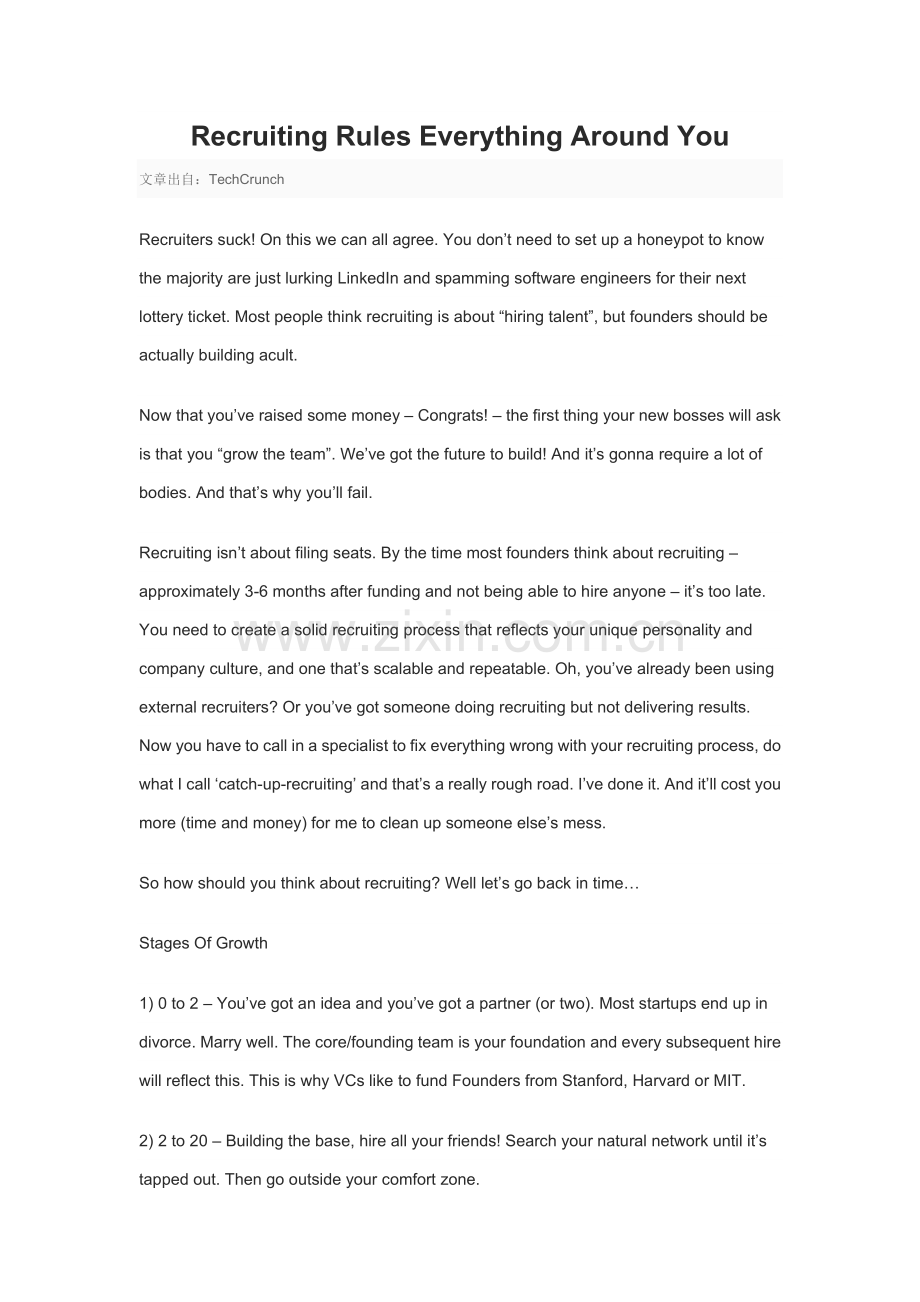1)把招聘作为日常工作,永不停止。这是创始人的首要任务。人们加入公司不是因为钱,期权,工作环境,而是因为你。