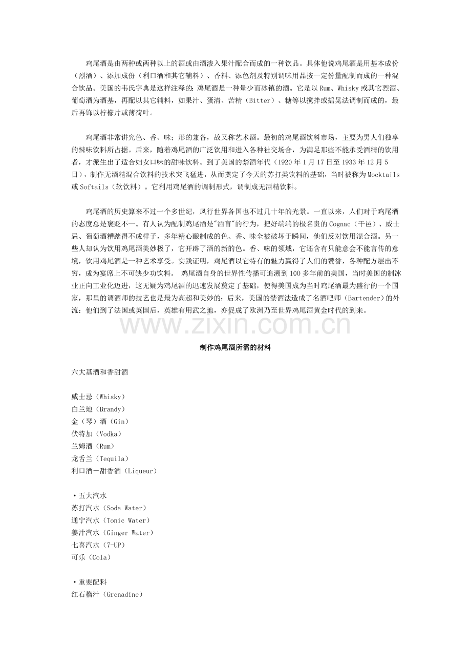 鸡尾酒简介(Cocktail)