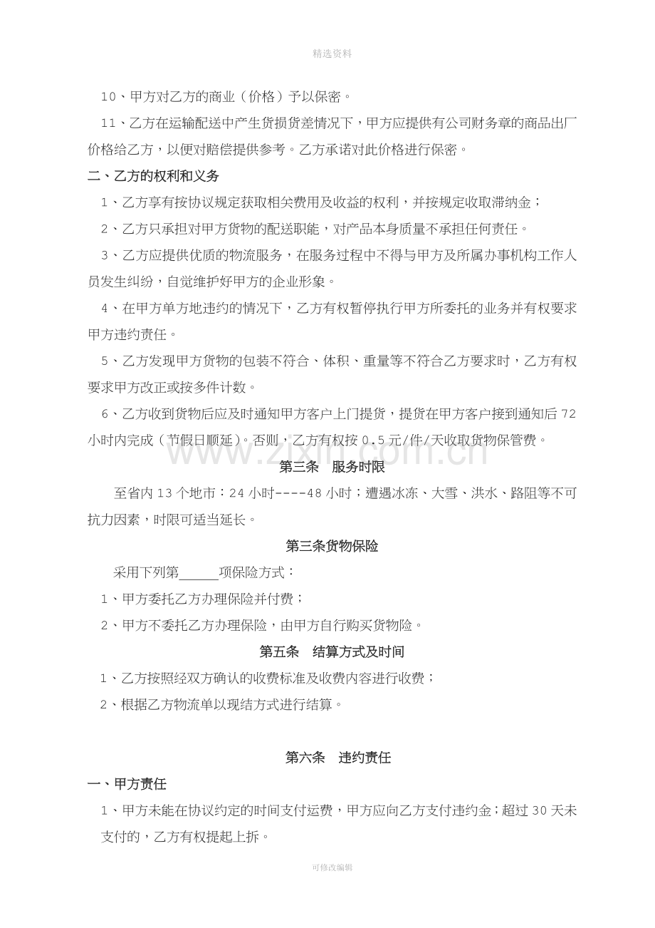3、乙方应提供优质的物流服务,在服务过程中不得与甲方及所属办事机构工作人员发生纠纷,自觉维护好甲方的企业形象。