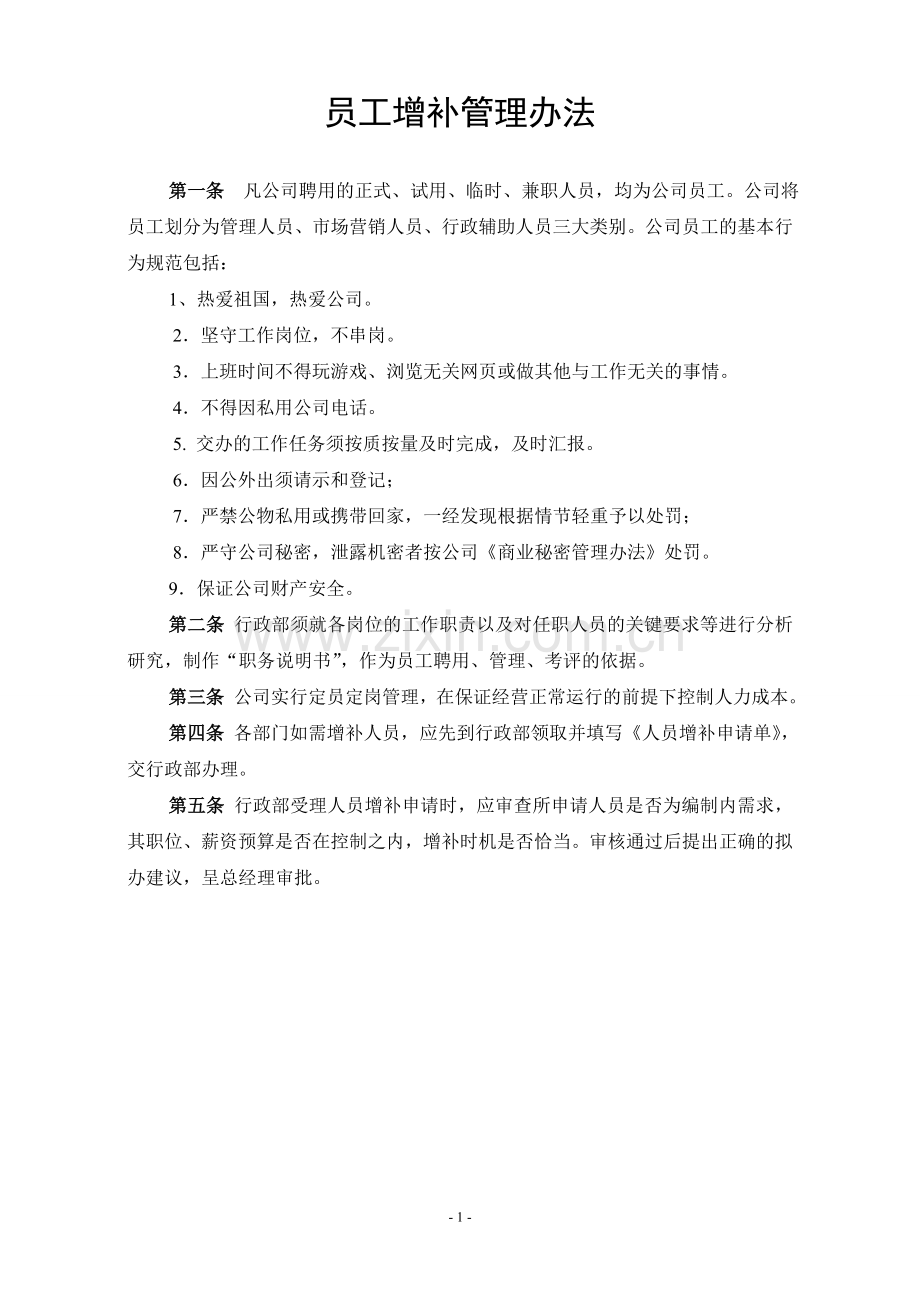 员工增补管理办法