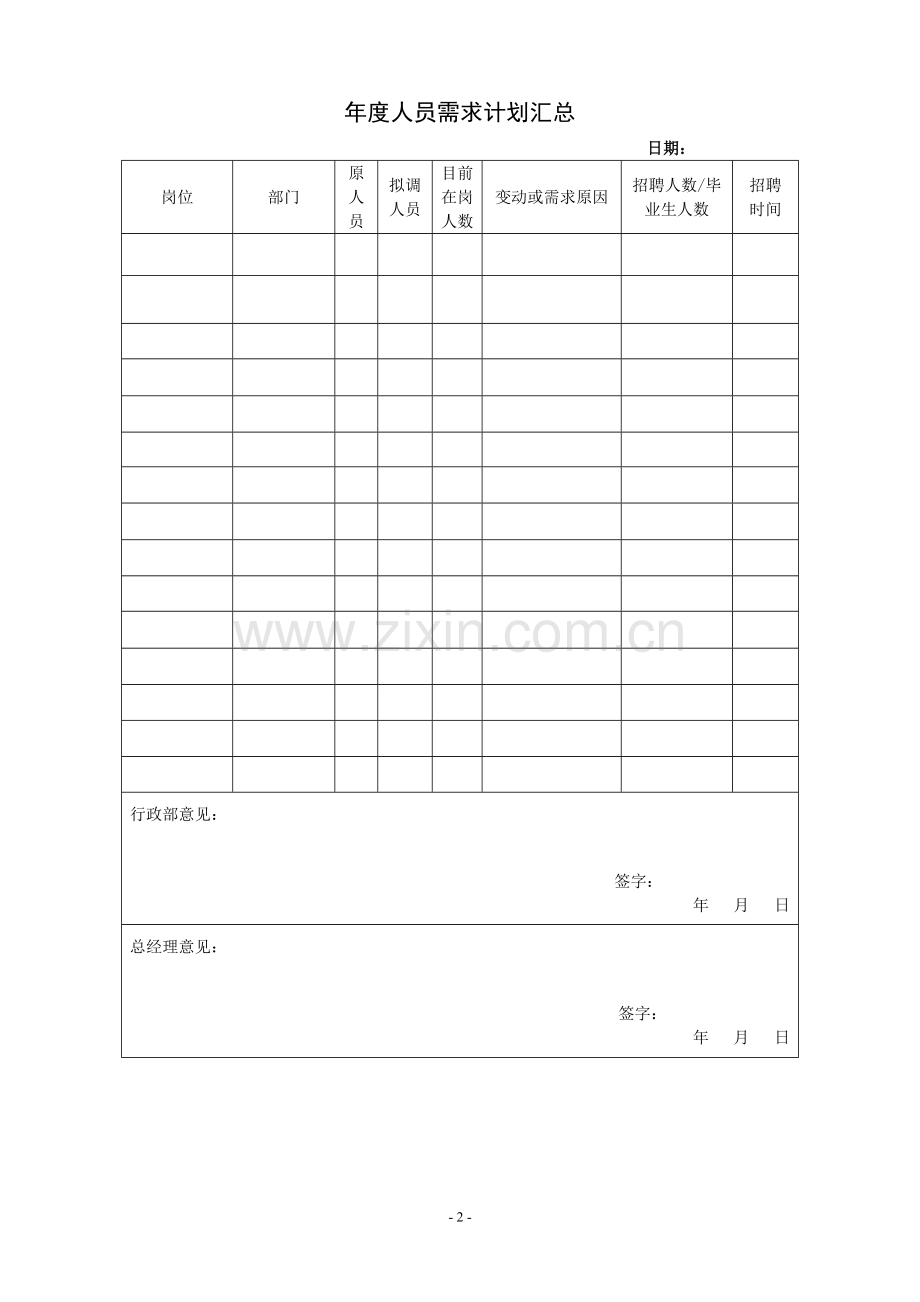 年度人员需求计划汇总
