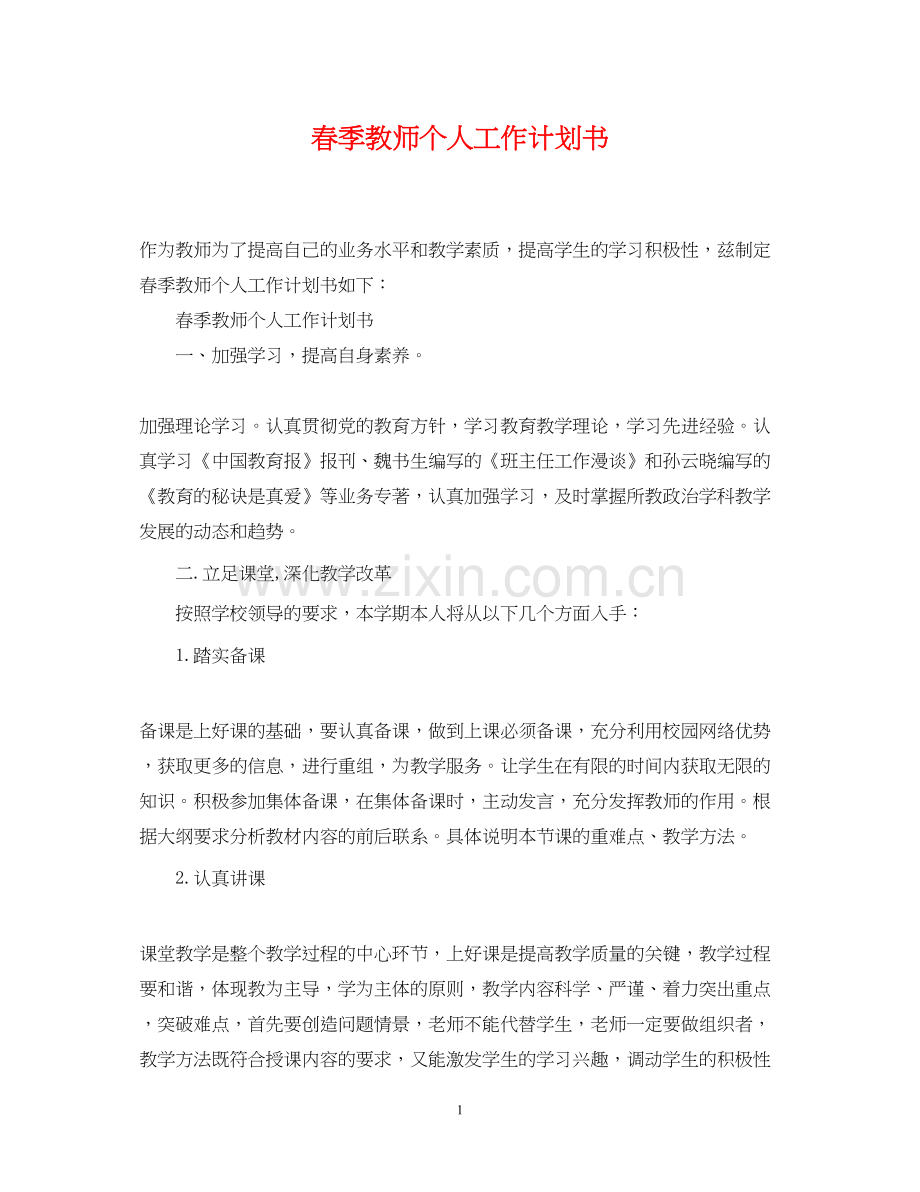作为教师为了提高自己的业务水平和教学素质,提高学生的学习积极性,兹制定春季教师个人工作计划书如下: