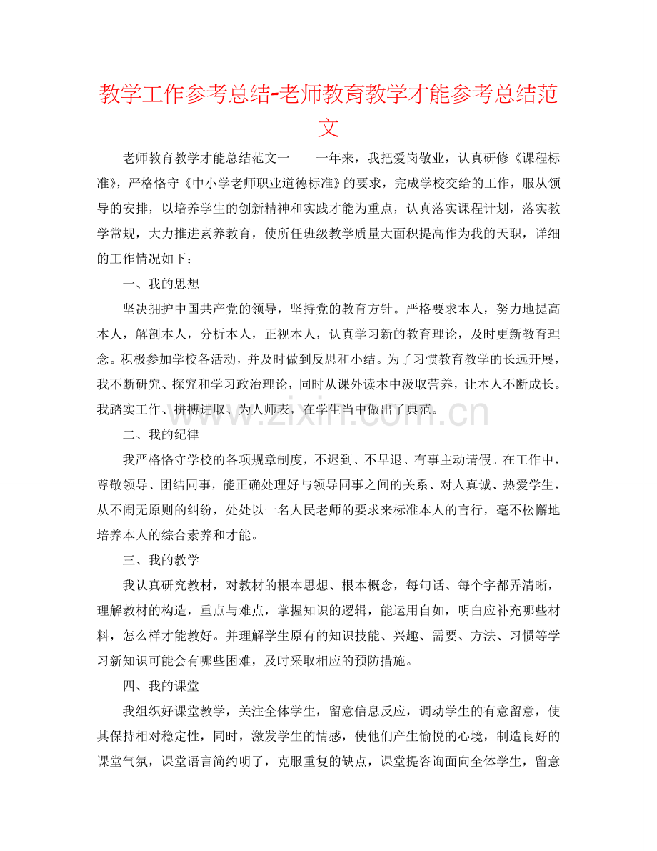 老师教育教学才能总结范文一 一年来,我把爱岗敬业,认真研修《课程标准》,严格恪守《中小学老师职业道德标准》的要求,完成学校交给的工作,服从领导的安排,以培养学生的创新精神和实践才能为重点,认真落实课程计划,落实教学常规,大力推进素养教育,使所任班级教学质量大面积提高作为我的天职,详细的工作情况如下: