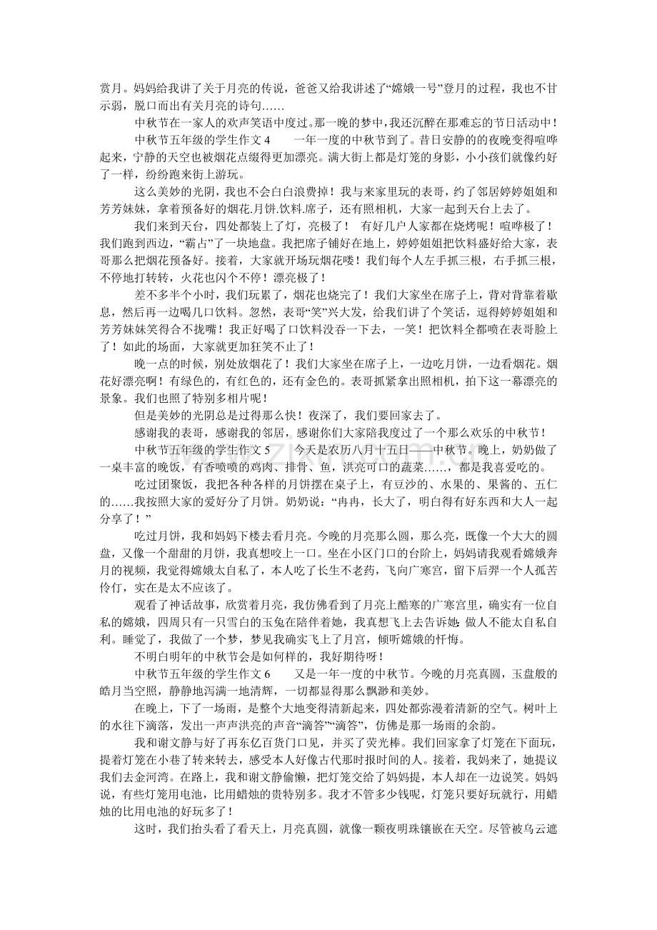 在日常学习、工作抑或是生活中,大家总少不了接触作文吧,借助作文能够提高我们的语言组织才能。那么一般作文是如何写的呢?以下是小编精心整理的中秋节五年级的学生作文(通用17篇),仅供参考,大家一起来看看吧。