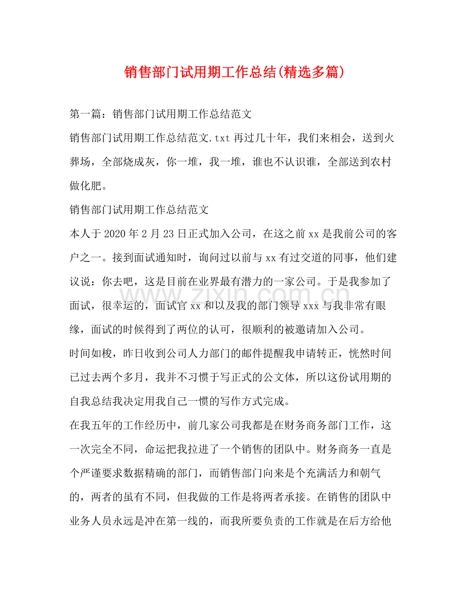 销售部门试用期工作总结范文.txt再过几十年,我们来相会,送到火葬场,全部烧成灰,你一堆,我一堆,谁也不认识谁,全部送到农村做化肥。