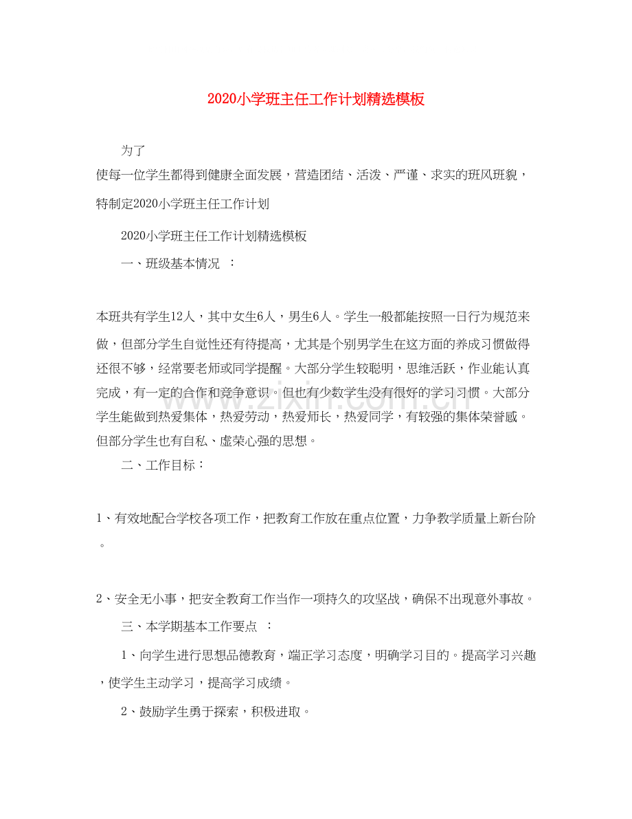 为了 使每一位学生都得到健康全面发展,营造团结、活泼、严谨、求实的班风班貌,特制定2020小学班主任工作计划