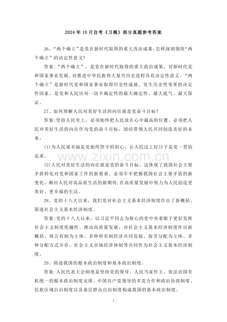 2024年10月自考《习概》部分真题参考答案