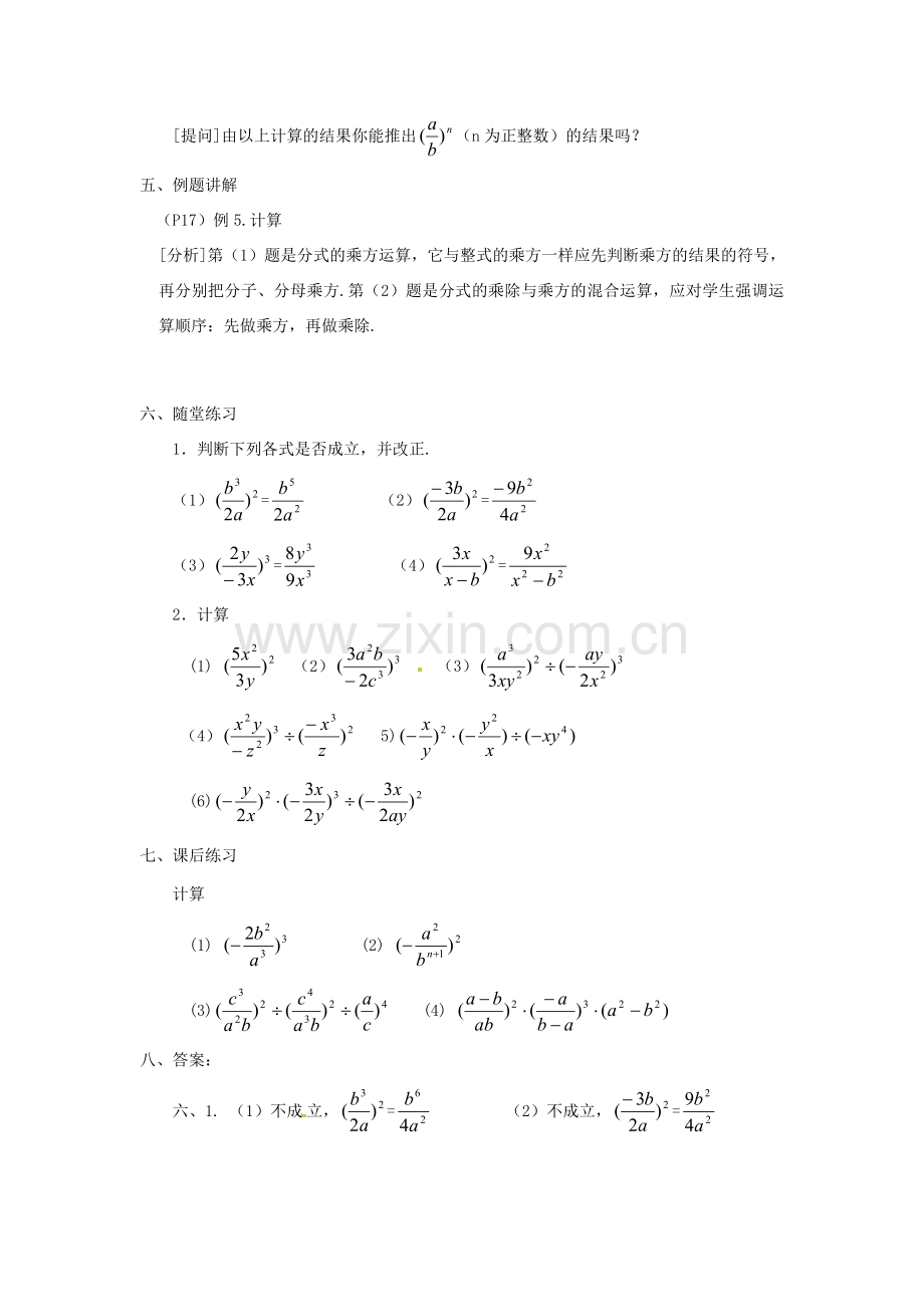 1. P17例5第(1)题是分式的乘方运算,它与整式的乘方一样应先判