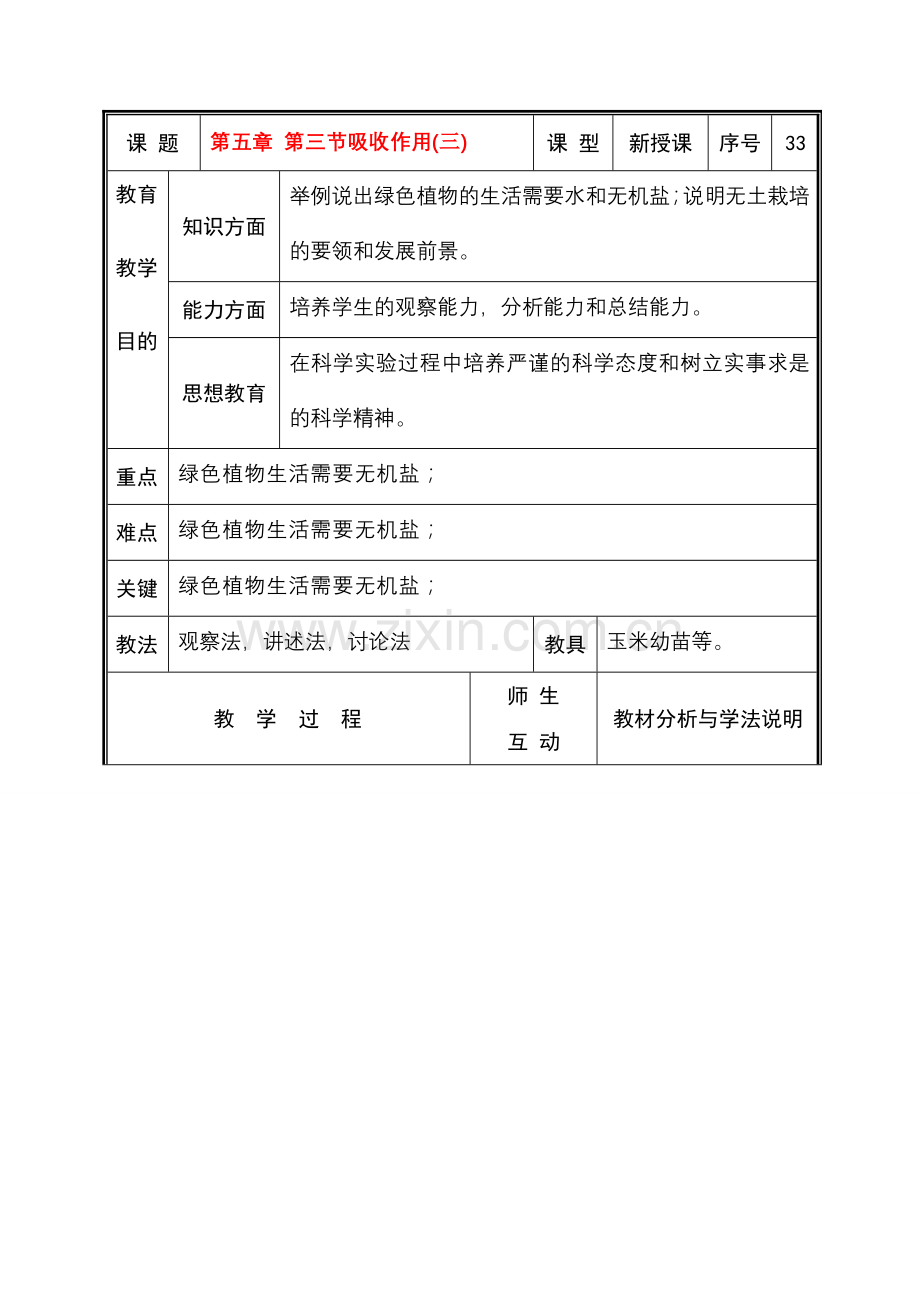 举例说出绿色植物的生活需要水和无机盐;说明无土栽培的要领和发展前景。