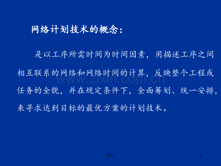 第九章 网络计划技术 9.1 概念及特点9.2 网络图的组成9.3 网络图的绘制原则9.4 网络图的绘制步骤9.5 网络时间计算9.6 关键路线确定9.7 计算完工期及其概率天马行空官方博客:http:/ 9.2 网络图的组成网络图的组成一一 工序(作业、活动)二二 事项(事件、结点)三三 路线42021一一 工序(作业、活动)工序(作业、活动)定义:指一项有具体内容的、需要人力、物力、财力、占用一定空间和时间才能完成的活动过程。虚活动(作业):只表示作业之间相互依存、相互制约、相互衔接的关系,但不需人力、物力、空间和时间的虚设的活动。示例1:示例2:先行活动、后续活动和并行活动B B12121 14 46 63 35 52 2产品设计产品设计A A自制零部件自制零部件B B1 1外购零部件外购零部件B B2 2装配装配C C样品鉴定样品鉴定D DA AD DC CB B455035155天马行空官方博客:http:/ 事项(事件、结点)事项(事件、结点)定义:工程(计划)的始点、终点(完成点)或其各项作业的连接点(交接瞬间)。表示方法:ii(结点编号):表示事项时间大致顺序 自左向右自上向下排列 一般以正整数表示 一个结点只有一个编号 各结点不允许重复使用 一个编号62021三三路线路线 定义定义:从网络图始点开始,顺着箭头方向前进,连续不断地 到达终点的一条通道称为网络图的一条路线。各条路 线所需的周期为对应的作业时间之和。关键路线和关键工序关键路线和关键工序:概念概念:网络图中所需工时最长的路线称为关键路线。关键路线上的工序称为关键工序 表示方法表示方法:关键路线及工序常用双线表示 注意注意:(1)关键路线的完成时间决定整个工程的完工时间;(2)关键路线不只一条。关键路线越多,组织工作 越好,安排越紧凑;(3)关键路线与非关键路线可以转化。72021一一 网络图是有方向的,不允许出现回路网络图是有方向的,不允许出现回路二二 直接连接两个相邻结点之间的活动只能有一个直接连接两个相邻结点之间的活动只能有一个三三 一个作业不能在两处出现一个作业不能在两处出现四四 箭线首尾必有结点,不能从箭线中间引出另一条箭线首尾必有结点,不能从箭线中间引出另一条 箭线箭线五五 网络图必须只有一个网络始点和一个终点网络图必须只有一个网络始点和一个终点六六 各项活动之间的衔接必须按逻辑关系进行各项活动之间的衔接必须按逻辑关系进行9.3 网络图的绘制原则网络图的绘制原则82021一一 网络图是有方向的,不允许出现回路网络图是有方向的,不允许出现回路 12345B BA AC CD DE E错错92021二二直接连接两个相邻结点之间的活动只直接连接两个相邻结点之间的活动只能有一个能有一个3543453 3D DC CB BA AD DC CB BA A错错错错对对对对天马行空官方博客:http:/ 出另一条箭线出另一条箭线 14131211131211配砂配砂造型造型造型造型配砂配砂2 2配砂配砂1 1对对对对错错错错112021五五网络图必须只有一个网络始点和一个网络图必须只有一个网络始点和一个六六 终点终点 23543145321错错错错对对对对122021 9.4 网络图的绘制步骤网络图的绘制步骤一一 定义各项作业(工作)定义各项作业(工作)恰当地确定各项工作范围,以使网络图复杂程度适中二二 编制工作表编制工作表(示例)(示例)(1)列出各项作业清单 (2)确定或估计各项作业时间 (3)表明各项作业之间的逻辑关系三三 画网络图画网络图(1)确定各项作业层次:无紧前作业的层次为1;其它各作业层次数=紧前作业层次中最大者+1(2)画草图 (3)画正图 (4)进行结点编号132021工作表编制工作表编制某新产品推销工作计划表某新产品推销工作计划表天马行空官方博客:http:/ 1图图3 3图图2 2ABKAICJHGEDCBIHGEDCBA152021网络正图网络正图 143568927026261519120202256102915190228151221226212500221212151521919111187612615811746151115711B6 62 2IHDGECA2 22 2KLJ7 74 410103 34 43 34 41620219.5 网络时间计算网络时间计算一 作业时间确定二 结点时间参数三 作业时间参数四 时差172021一一作业时间确定作业时间确定1 单一时间估计法单一时间估计法2 三点时间估计法三点时间估计法:乐观时间 a:顺利情况所需最短时间 最大可能时间 m:正常条件下所需时间 悲观时间 b:不正常条件所需最长时间 a+4m+ba+4m+b6 6b-ab-a6 6作业平均时间作业平均时间t=作业时间标准差作业时间标准差 =标在网络图中标在网络图中天马行空官方博客:http:/ 2 结点最迟结束时间二二 结点结点时间时间参数计算参数计算192021l概念概念:保证该结点先行作业能够完成的前提下,从该结点开 始的各项作业最早开始时间。l表示方法表示方法:ES(i):作业“i -j”箭尾结点最早开始时间 ES(j):作业“i -j”箭头结点最早开始时间l计算规则计算规则:由始点开始,由左至右计算 ES(1)=0 ES(j)=max ES(i)+t(i,j)l图上表示法图上表示法:10i1 结点最早开始时间 ijES(结点号码)2020212 结点最迟结束时间结点最迟结束时间l概念概念:即保证该结点后续作业都不延误的前提下,该结点前 边的先行作业最迟结束时间。l表示方法表示方法:LF(i):作业“i -j”箭尾结点最迟结束时间 LF(j):作业“i -j”箭头结点最迟结束时间l计算规则计算规则:由终点开始,自右至左计算 LF(终点)=ES(始点)LF(i)=min LF(j)-t (i,j)l图上表示法图上表示法:i15 ijLF(结点号码)212021三三 作业时间参数的计算作业时间参数的计算1作业最早开始时间作业最早开始时间;2 ES(i,j)=ES(i);2 作业最早结束时间作业最早结束时间;EF(i,j)=ES(i)+t (i,j);3 作业