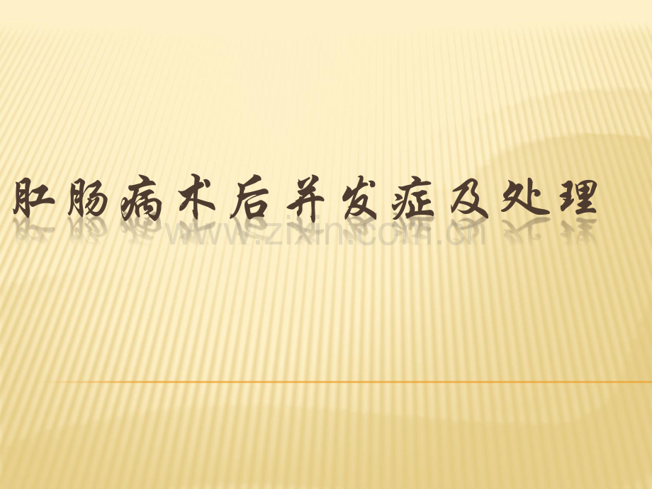 肛肠病术后并发症及处理前言 手术是肛肠病治疗中最主要的手段,然而任何手术都会给患者带来一定的损伤,且由于患者体质的不同,病情轻重缓急之分,手术也有大小的差别,因此一些患者常会出现某些反应和并发症,如疼痛、出血等均会给患者带来一定的痛苦,甚至会出现休克等严重的后果。因此,了解手术并发症并掌握其处理方法是十分重要的。尿 潴 留 一、原因原因 术后发生AUR的原因不明,诱因是多方面的:1、麻醉影响:腰骶麻后由于肛门和尿道括约肌受骶24N支配,排尿反射可受到抑制 14.48%。局麻效果不充分,不完全局麻效果不充分,不完全.也可引起排尿障碍。当麻醉不完全时,可引起肛门括约肌痉挛,反射性引起排尿障碍0.61%。尿 潴 留 2、手术刺激。操作粗暴、切除范围大,局部损伤过重,肛内塞油纱过多,可引起肛门括约肌的痉挛。压迫尿道而产生排尿障碍。3、术后疼痛,是引起排尿障碍的主要因素.切口数目3处占14.62%2处占14.29%4、心理因素。因恐惧手术而思想过度紧张。在不习惯的环境下,因条件反射而产生尿潴留 5、年老体弱。前列腺炎术后水肿,压迫尿道引起排尿困难。6,静脉输液静脉输液 量1000ml 26.92%500ml 10.67%。二二 症状与体征症状与体征;呈滴状排尿或不能排出。下腹涨痛。膀胱膨隆三、处理;三、处理;排尿障碍特别是发生尿潴留的情况,患者痛苦较大,应及时处理。1、一般处理:1。多饮水,及时排尿,流水声建立条件反射,油纱过多过紧的拔掉,止痛处理。做好思 想工作,解除恐惧心理。2、局部热敷,按摩、开塞露灌肠 3、针刺:三阴交.中极.长强.白环俞 4、药物治疗:新斯的明,15mg,穴位注射 CNB:0.25g,肌注。中药:五苓散,八正散。通浮汤.膀胱充盈脐下2cm效果显著,增大者则差.二。导尿处理。四、预防四、预防:1、术前用药,精神放松,对伴有前列腺肥大做相应治疗.限制液体输入量.2、有效的麻醉,充分的肌松。3、轻柔细致的操作,减少损伤。4、局部长效止痛剂,减少术后疼痛。5、肛管内填油纱不宜过多过紧。出 血原发性出血继发性出血术后出血是最常见的并发症,特别是痔术后大出血,是不可忽视的严重并发症,甚至可以危及生命,是肛肠科医生最值的关注的并发症。一、原因一、原因:原发性出血原发性出血。多在术后数小时内,是由于手术操作不当或手术中对创面止血不完善所致。1、操作因素;伤口过大过深过高.粘膜损伤过多.术中活动性出血点未结扎 2、剪除结扎线上的痔组织多,血管回缩滑脱。3、向创口内放油纱不紧,或将结扎线推掉。一、原因一、原因:4、炎症、组织脆弱结扎不紧.松脱。活动过早.便秘粪嵌塞排出用力过猛.撕裂伤口及动静脉血管出血.5.付肾素作用,术中收缩,术后扩张而出血。6.有出血倾向性疾病:血小板减少,出血时间延长.出 血 一、原因一、原因:继发性出血继发性出血 1、内痔套扎、注射坏死剂多发生在术后314天。是痔核坏死脱落,形成新鲜创面,A血管未闭而出血。2、内痔结扎线脱落、缝针贯穿过深,伤及大的血管,当痔核坏死脱落时,深部创面的A血管闭锁不牢,就会出现大出血。3、创口感染或损伤.坏死组织下血管受侵蚀。术后痔核脱落及创面修复期 间,剧烈活动或大便秘结,排便用力过猛,撕裂伤口引起大出血。4.药物因素;术后用阿斯匹林.消炎痛抑制血小板.出 血一、原因一、原因:5、某些全身性疾病如血小板减少、出血时间的延长、门脉高压、高血压、再障、血友病等有出血性倾向的全身性疾病术前被忽略,或未积极治疗。出 血二、症状体征二、症状体征 即时性出血:发生于术后当日或在48小时以内。继发性出血:是在术后314天之内发生的大出血,多是隐性直肠内大出血,是一种严重并发症。出 血二、症状体征二、症状体征出血流向部位:向内出血:即向直肠内出血(又称隐性出血),起初可无感觉,但随流入血量的增多,下腹胀满,肛门灼热,欲便排出迅速排出血液或黑色血块。伴有心慌、头晕,眼发黑,四肢无力甚至晕倒,处理不及时可伴出血性休克。出 血二、症状体征二、症状体征向外出血:即肛门外出血,又称显性出血,由切口流出,浸染衣物。外出血并不可怕,能及时发现。出 血 二、症状体征二、症状体征 出血量的多少:大量或中量出血:出血量多而急,病情重、症状体征明显,严重时可出现失血性休克,必须及时处理。出 血三、处理与治疗三、处理与治疗:1、少量出血:注意观察,可不予处理。2、多量出血:应仔细观察病情,密切护理。注意BP、P等变化。迅速输液或输血,立即扩溶并加止血药(止血敏)等以改善血凝和纠正休克。止血宝.出 血三、处理与治疗三、处理与治疗3、渗血不止或出血位置较高的出血点,不便结扎,可以用明胶海棉、油纱布、付肾素纱布.五龙止血散.止血生肌粉油纱.明矾膏等填充压迫止血。出 血 三、处理与治疗三、处理与治疗 4、立即在局麻或骶麻下,清除肠腔积血。在肛门镜下找到出血点,用组织钳将创缘向外拉出,以4丝线或0肠线8字贯穿缝扎止血(注意穿针不可太近伤口,以免结扎时撕裂松脆的伤口组织)出 血 三、处理与治疗三、处理与治疗 5、气囊压迫:富瑞氏尿管,避孕套。6、灌肠法:对于继发性出血,采用黄氏8%.温明矾液灌肠,有很多优点,是一种非手术性止血措施,具有简便验廉的止血方法。出 血 三、处理与治疗三、处理与治疗7、硬化止血法:适用于继发性出血,在出血部位上方粘膜下