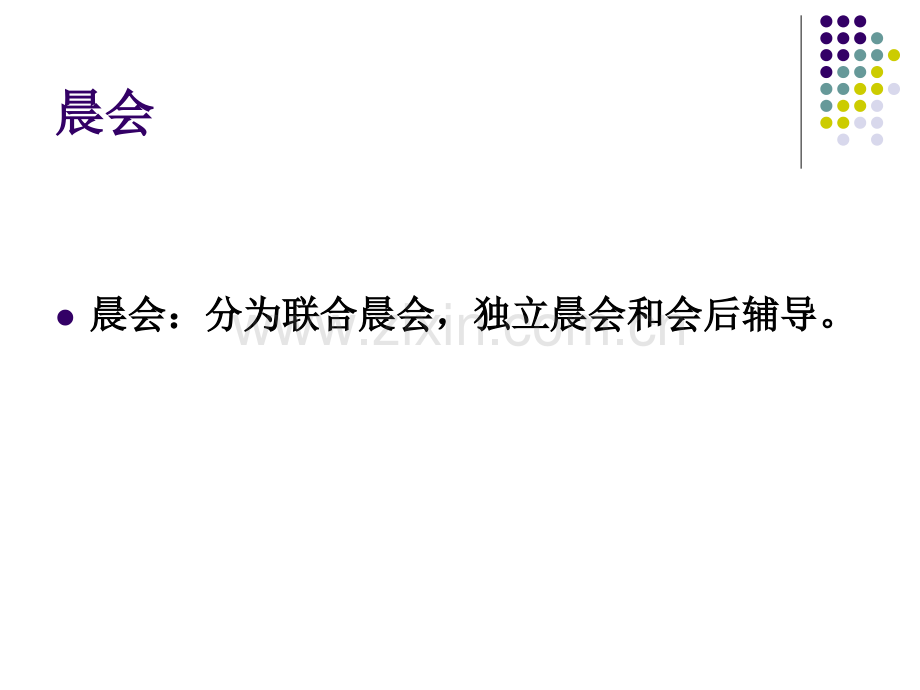 晨夕会管理规定晨夕会管理规定 谢小平时间确定时间确定晨会:8:309:30;根据店面实际情况安排具体时间,但不能少于45分钟;夕会:根据店面实际情况选择客流量较少的时段;晨会晨会l晨会:分为联合晨会,独立晨会和会后辅导。晨会:分为联合晨会,独立晨会和会后辅导。联合晨会联合晨会方向及原则 共同学习、解决业务问题、激励及渲染工作氛围、传道 授业。一店多组必须召开联合晨会。固定内容及流程固定内容及流程l会前召集:节奏鲜明、振奋人心的召集音乐,工作作风战士,团队风采展示。l问候语:玛雅的家人们大家早上好;大家回答“说的做的,才是正的好”固定内容及流程固定内容及流程l新闻播报:行业新闻、商圈新闻、国家新闻、公司新闻,包括业内信息及政府部门相关政策,如政府对店内周边环境、交通的最新规划。结合本店实际情况以温馨提示的方式进行,切忌照本宣科。l天气预报:气象预报,业务影响提示,如:要下雨了提醒外出看房的经纪人带好雨具,提醒有钥匙托管的经纪人去房屋检查窗户是否关好。l政令宣读:助理宣读公司、大区、区域及店面相关制度,如有新制度及新规定宣读并进行简单学习,如没有则复习相关制度及规定。以业务制度为准。固定内容及流程固定内容及流程l喜讯传达:工作中、生活中均可,店内最新发生的值得鼓励表扬或有纪念意义的事件,如:开单鼓励,好人好事,生日祝贺,入司周年纪念,升级鼓励等。由助理负责搜集。l所有人员重申目标及达成情况,每人自己说出月目标的完成情况。l店经理总结:以鼓励表扬为主可选内容可选内容l迎新会l团队竞赛l案例分析l专题研讨l开心乐园l户外健身l读书会l头脑风暴l剧情表演独立晨会独立晨会固定内容及流程 l房源客源介绍。l新增资源分析及销售计划制定。l经纪人工作安排:开发、带看、回访、参加培训、谈判、签约。l店经理工作公示。可选内容可选内容l专业知识学习l个案分析l压力疏导l团队训练会后辅导会后辅导l辅导明天晨会内容。l对会议疑问人员进行单独辅导。l对新人、成问题人员进行单独辅导夕会夕会夕会夕会:为一日工作的总结会,主要进行当日工作为一日工作的总结会,主要进行当日工作的分析与总结以及对策的制定。的分析与总结以及对策的制定。固定内容及流程固定内容及流程l工作完成量化考核日清日结l新增资源分析房源、客源分析l今日带看分析l明日计划制定可选内容可选内容l开单分享l业务学习l案例分析l座谈会l庆生会会议人员管理会议人员管理联合晨会店经理负责组织会议,店面全体人员包括助理参加。独立晨会由店经理组织店内人员参加,店助理根据需要自行选择参加。会后辅导店经理与相关人员参加。夕会店经理组织店内经纪人参加。所有参加人员请假需提前一天确定。会议组织会议组织各环节负责人l店经理负责晨夕会的组织及策划工作(分店如为多组时,将采取轮流负责联合晨会的组织策划工作)。l店助理负责政令传达及喜讯播报。l店经理负责挑选经纪人担当主持人。会议计划会议计划 人员l联合晨会主持人人选的确定;l特殊会议形式,需要配合的其他经纪人名单;l晨会后需要单独辅导的人员确定;内容l晨夕会内容中的固定内容每天必须要完成;l根据店内实际情况,适当安排一项或几项可选内容;l可选内容应以店内经纪人都能够积极参与为选择标准;l结合公司的最新激励项目;达成目标 l预期达到的效果l实际达成目标晨会辅导晨会辅导晨会辅导是对选定主持人主持晨会能力提升及保证联合晨会晨会辅导是对选定主持人主持晨会能力提升及保证联合晨会成功率的成功率的必要手段。必要手段。店经理在当日晨会结束后要对明天主持晨会的主持人进行辅导,并在当天下班前填好晨会主持表,辅导内容详见晨会主持表(见附件一)。店经理在当天下班之前对明日晨会主持人进行辅导后的审核,并再次对其晨会的准备程度做出指导。晨会当日早:前店经理与主持人应到店,店经理对其主持内容再次确认,并确定新闻点及友情提示夕会日结表夕会日结表l参加店经理夕会日结表(见附件二)违规处理违规处理l没有按时召开晨夕会给予店经理过失处罚(50元罚款)每次(如一店多组没有联合晨会,处罚负责当天联合晨会的店经理)。l经纪人无故不参加晨夕会给予经纪人四级过失处罚(25元罚款)。l晨夕会固定内容没有全部完成给予店经理过失处罚(10元罚款)每次每项 附件一:附件一:晨会主持表晨会主持表l晨会主持表l 年 月 日 星期 晨会主持人:l早会内容提示:l问候语l新闻播报l天气预报l政令宣读(店面助理)l喜讯传达l目标完成情况l其他可选内容l可选内容介绍(请列出具体内容,参与人员,进行流程,根据时间可安排一项或几项内容)l(1)l(2)l(3)l(4)l店长期许附件附件二二:店经理夕会日结店经理夕会日结今今日日行行程程完完成成情情况况新增房源分析房源属性是否查验清楚?房屋出售动机?是否急于出售?售房相关资料是否齐全?是否有欠贷?是否有能力赎证?如继承、外籍手续是否提醒提前准备?家人是否达成一致?婚姻是否正常?房主是否配合?是否告诉跳单、及其他中介相关风险?看房时机及路线是否考察?如何制定下一步销售计划?何时反馈房主?反馈房主时说些什么?组织分店全体成员集思广益,寻找该房源出售卖点。组织分店全体成员集思广益,寻找该