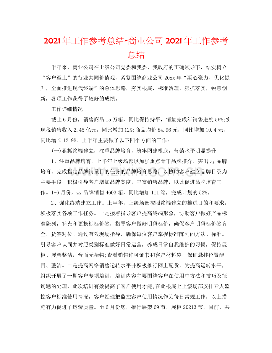 2021年工作参考总结-商业公司2021年工作参考总结