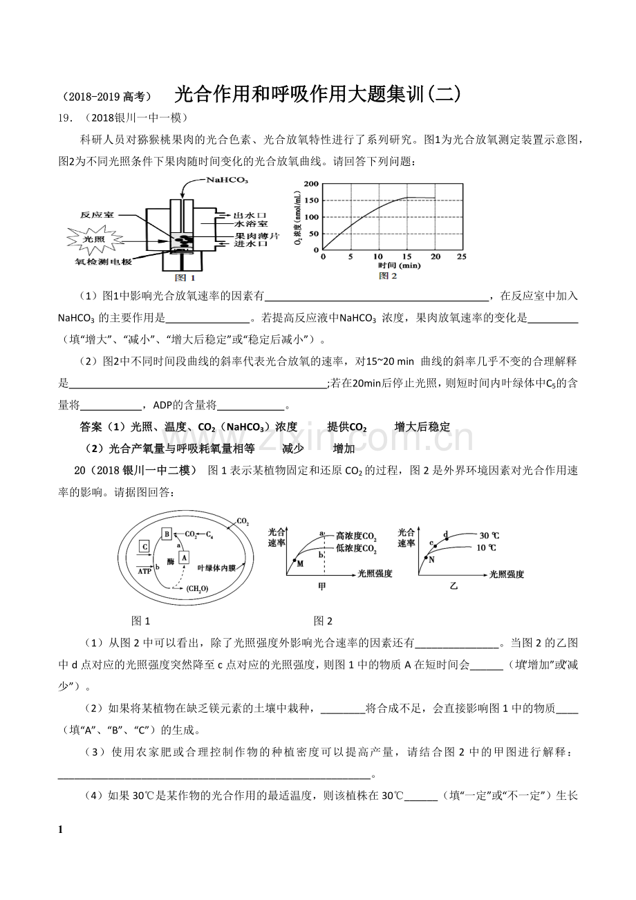 (2018-2019高考) 光合作用和呼吸作用大题集训(二)