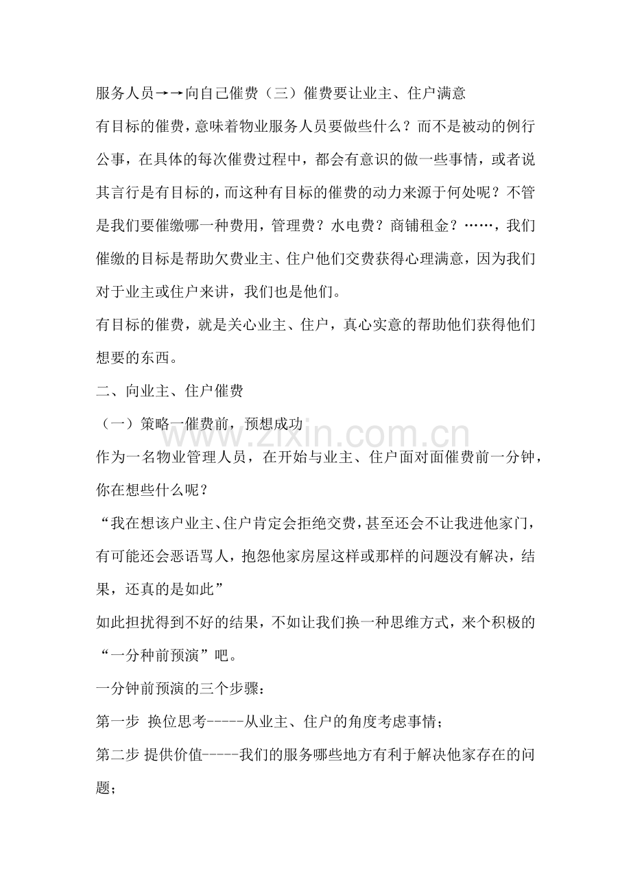 催费背后的人 交费的两部分业主、住户→→向业主、住户催费物业服务人员→→向自己催费(三)催费要让业主、住户满意