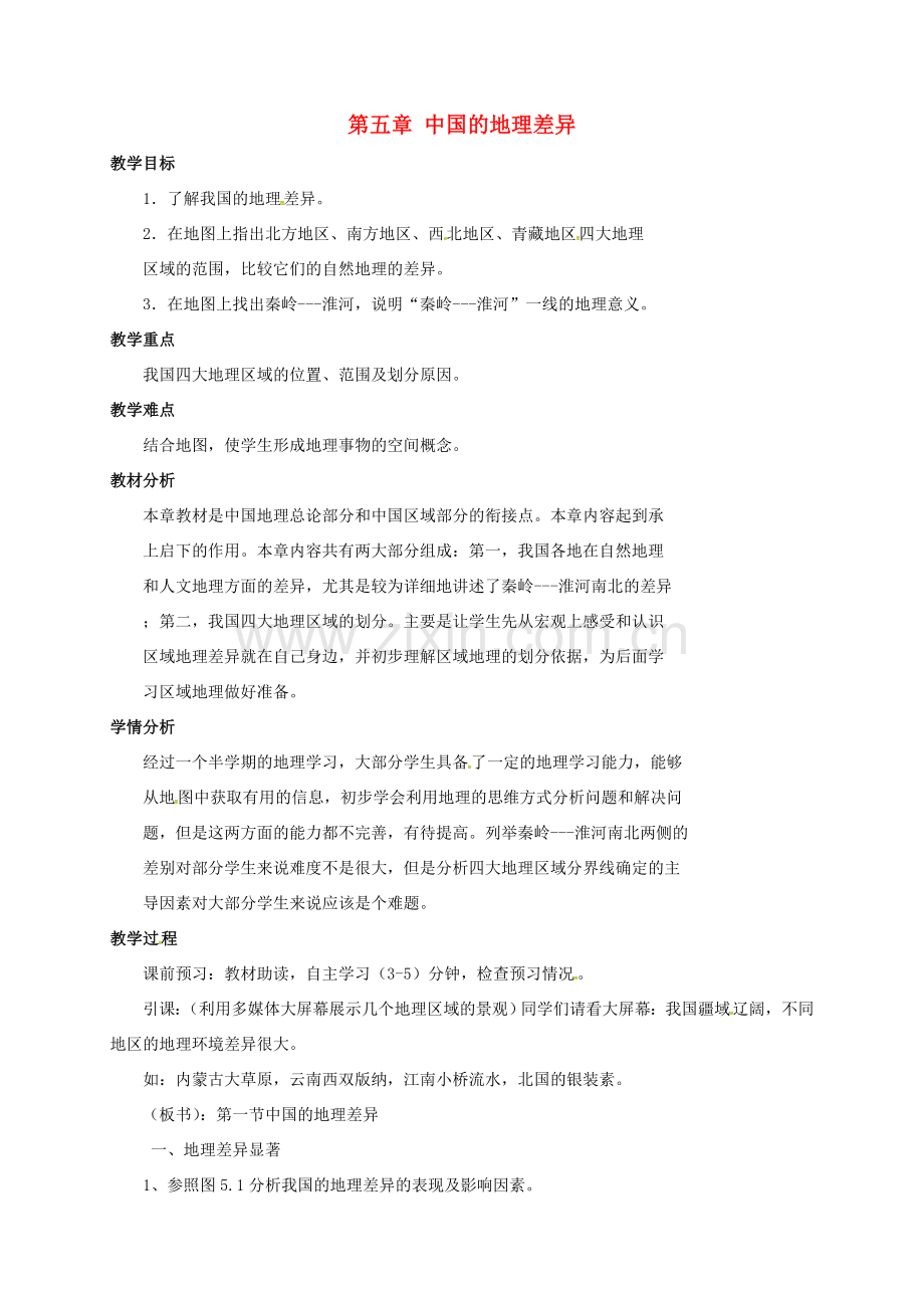 和人文地理方面的差异,尤其是较为详细地讲述了秦岭---淮河南北的差异