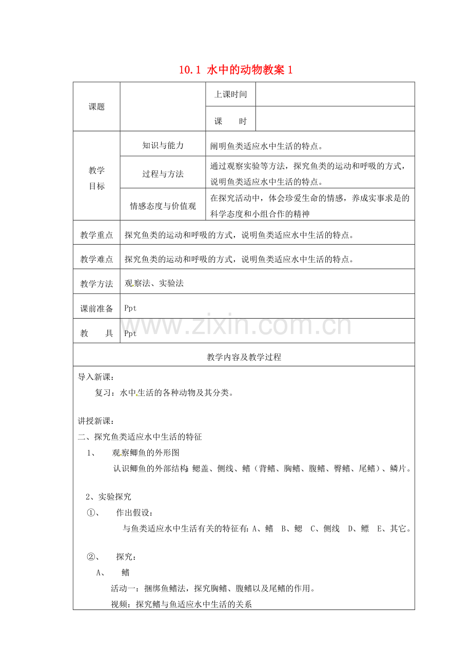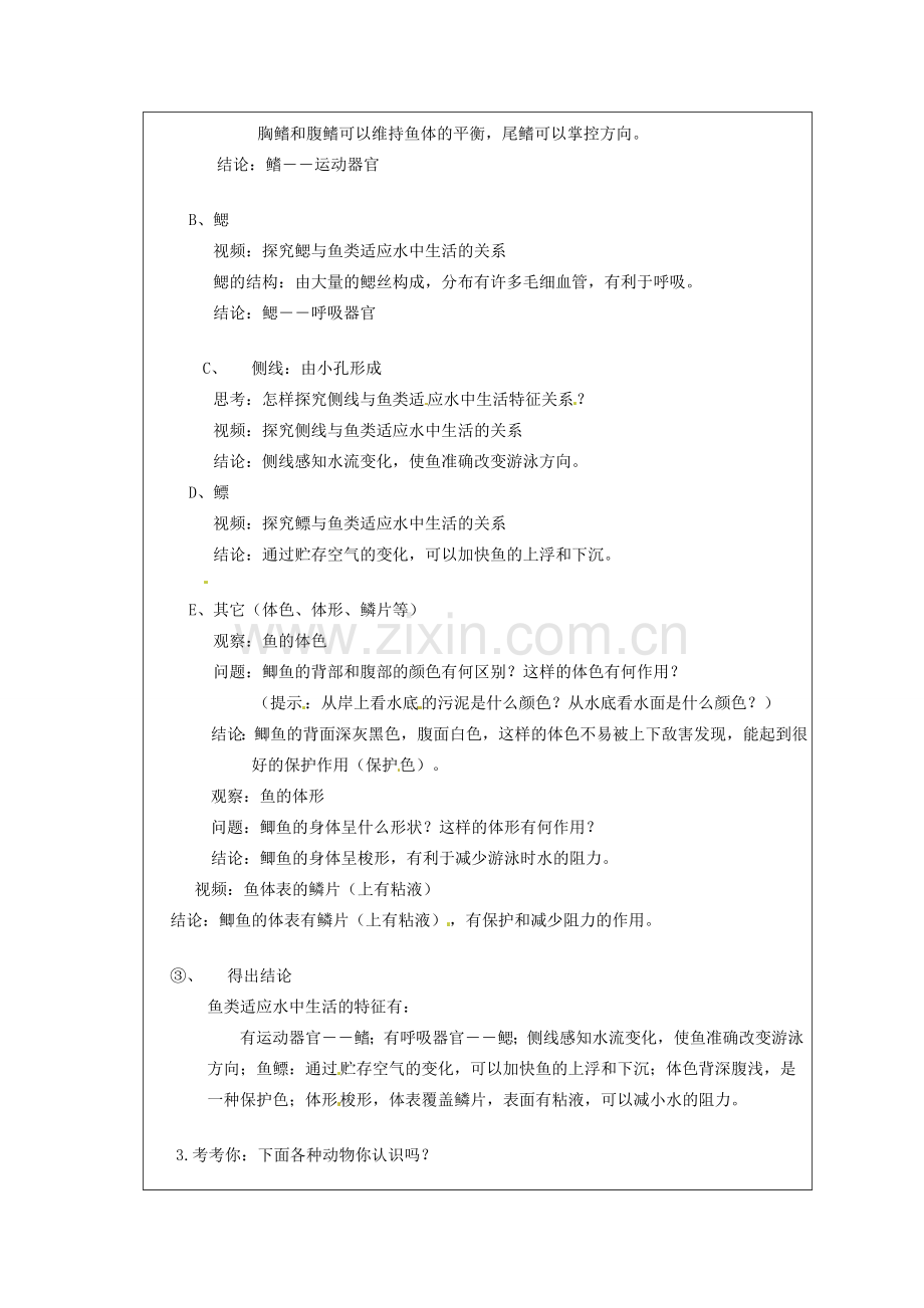 通过观察实验等方法,探究鱼类的运动和呼吸的方式,说明鱼类适应水中生活的特点。