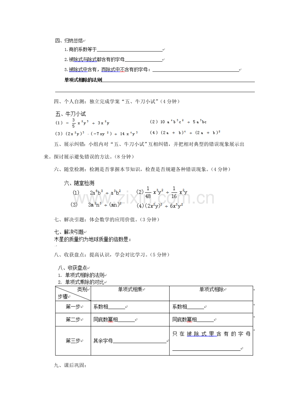 教学准备:提前发放学案《§12.4.1单项式除以单项式学案》
