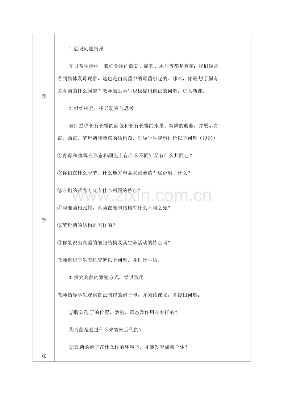 在日常生活中,我们食用的蘑菇、腐乳、木耳等都是真菌;我们经常看到物体发霉现象,这也是由真菌中的霉菌引起的。那么,你最想了解有关真菌的什么问题?教师鼓励学生积极提出自己的问题,进入新课。