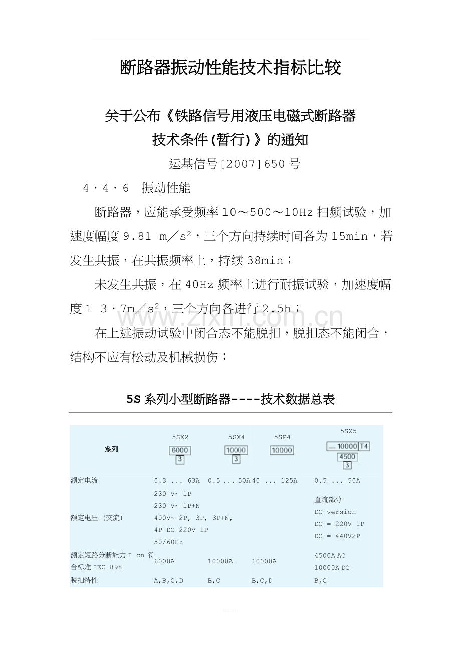 断路器振动性能技术指标比较