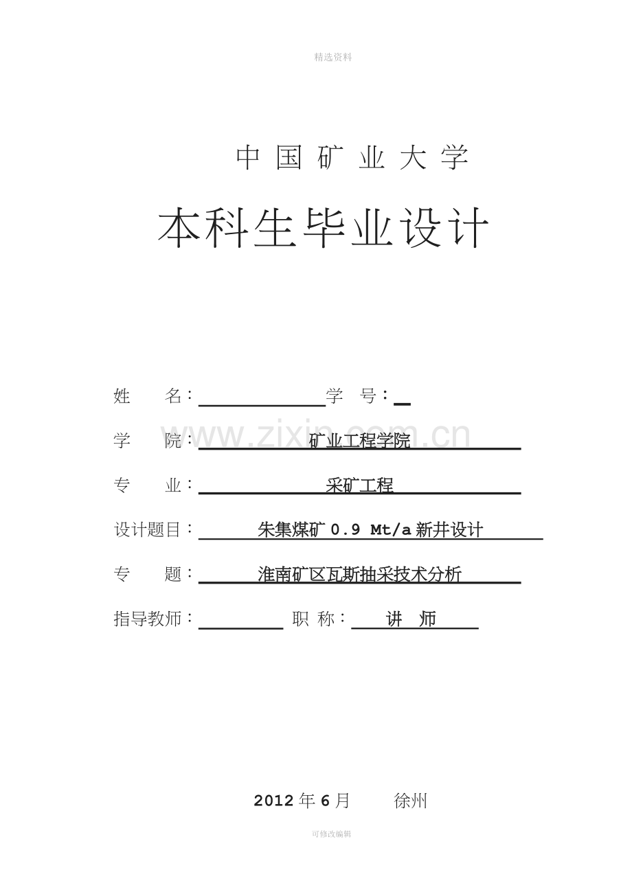 设计题目: 朱集煤矿0.9 Mt/a新井设计