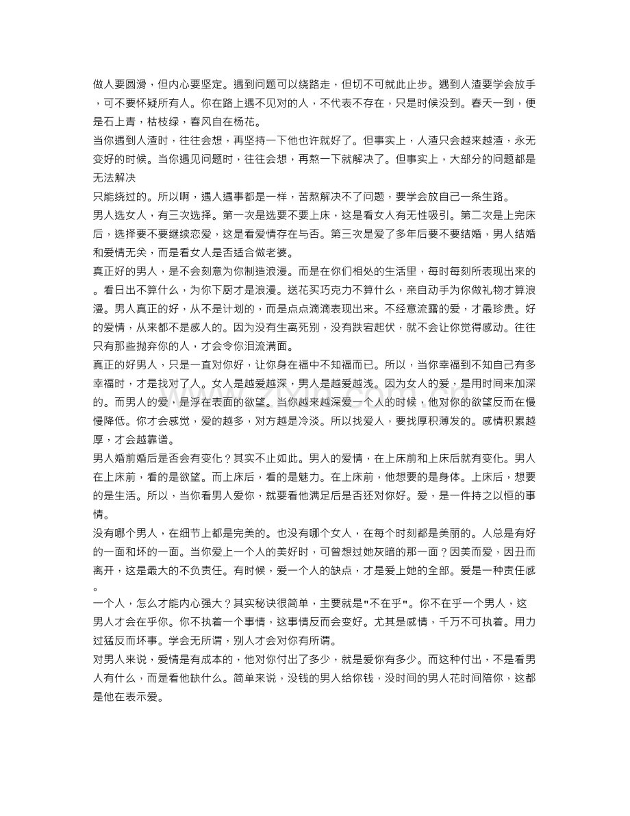 真正的好男人,只是一直对你好,让你身在福中不知福而已。所以,当你幸福到不知自己有多幸福时,才是找对了人。女人是越爱越深,男人是越爱越浅。因为女人的爱,是用时间来加深的。而男人的爱,是浮在表面的欲望。当你越来越深爱一个人的时候,他对你的欲望反而在慢慢降低。你才会感觉,爱的越多,对方越是冷淡。所以找爱人,要找厚积薄发的。感情积累越厚,才会越靠谱。