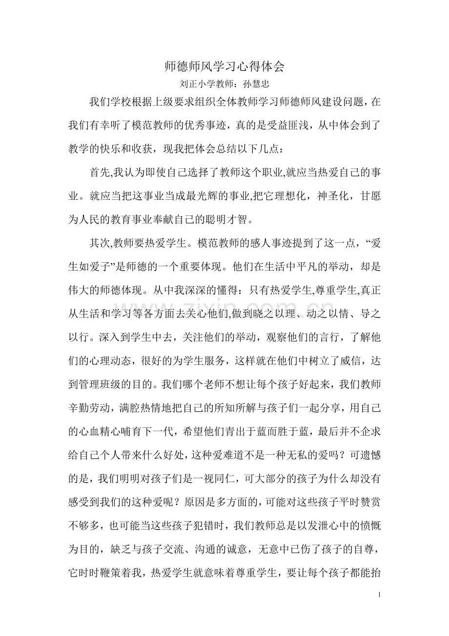 刘正小学教师:孙慧忠