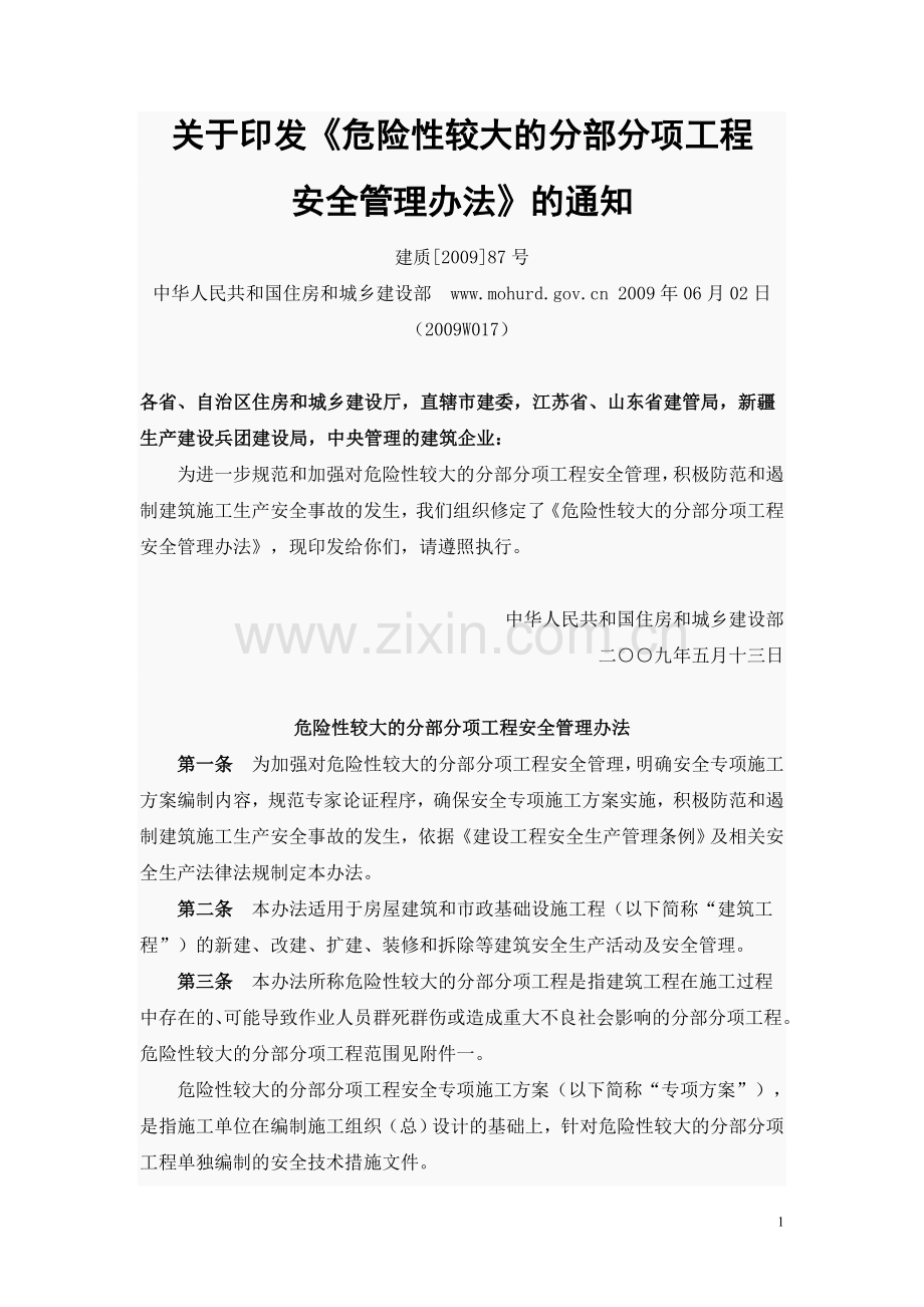 为进一步规范和加强对危险性较大的分部分项工程安全管理,积极防范和遏制建筑施工生产安全事故的发生,我们组织修定了《危险性较大的分部分项工程安全管理办法》,现印发给你们,请遵照执行。