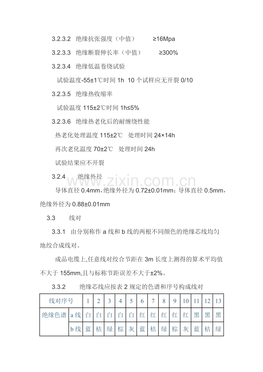 3.3.2 绝缘芯线应按表2规定的色谱和序号构成线对