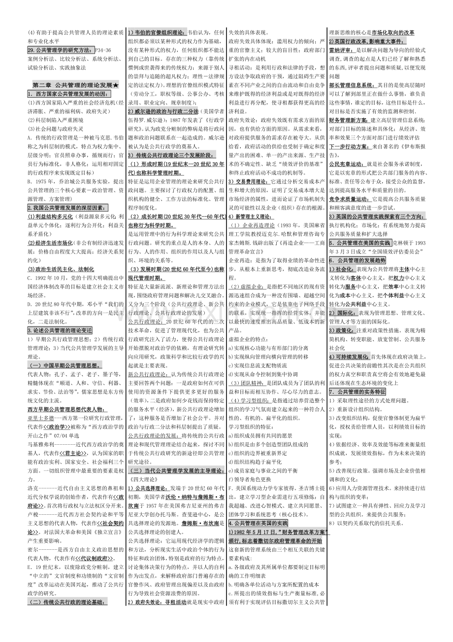 1.公共管理:P4是研究公共组织(主体)依法(依据)运用公共权力(基础)管理社会公共事务(客体),实现社会公共利益(目标)的过程。