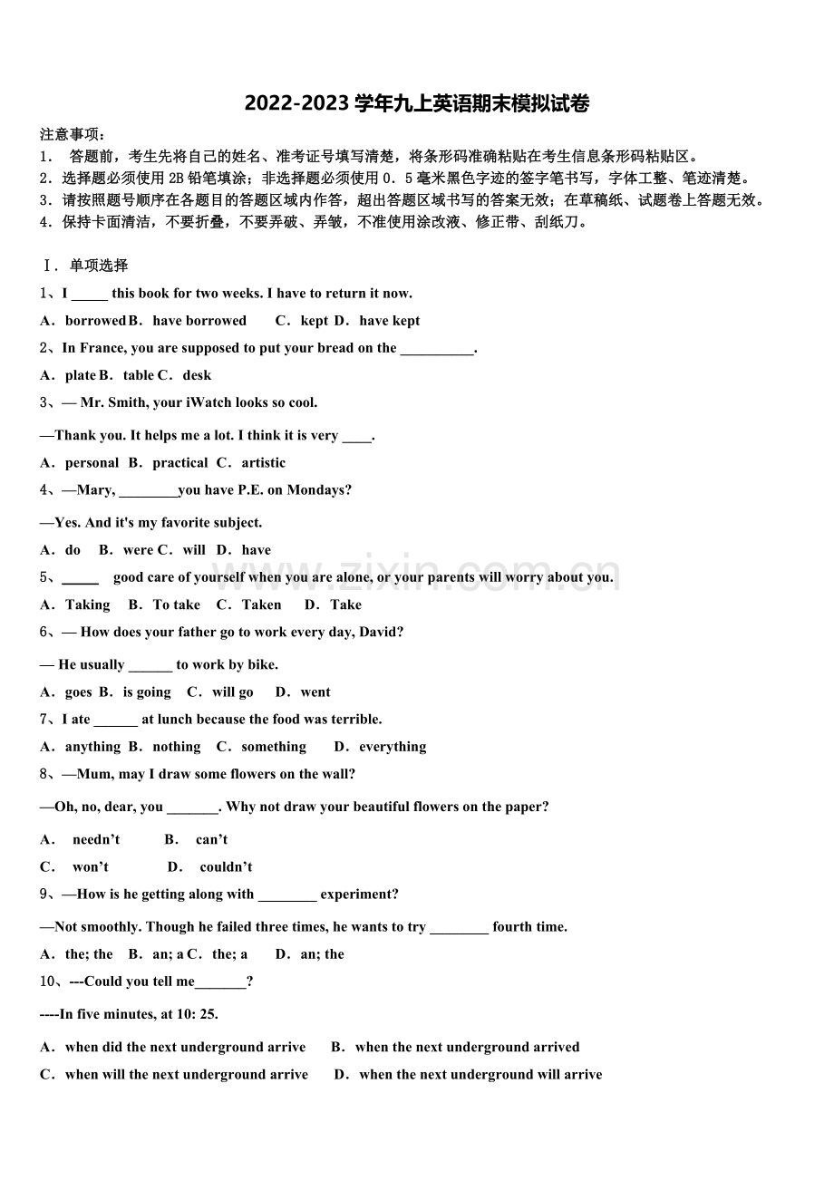 1. 答题前,考生先将自己的姓名、准考证号填写清楚,将条形码准确粘贴在考生信息条形码粘贴区。