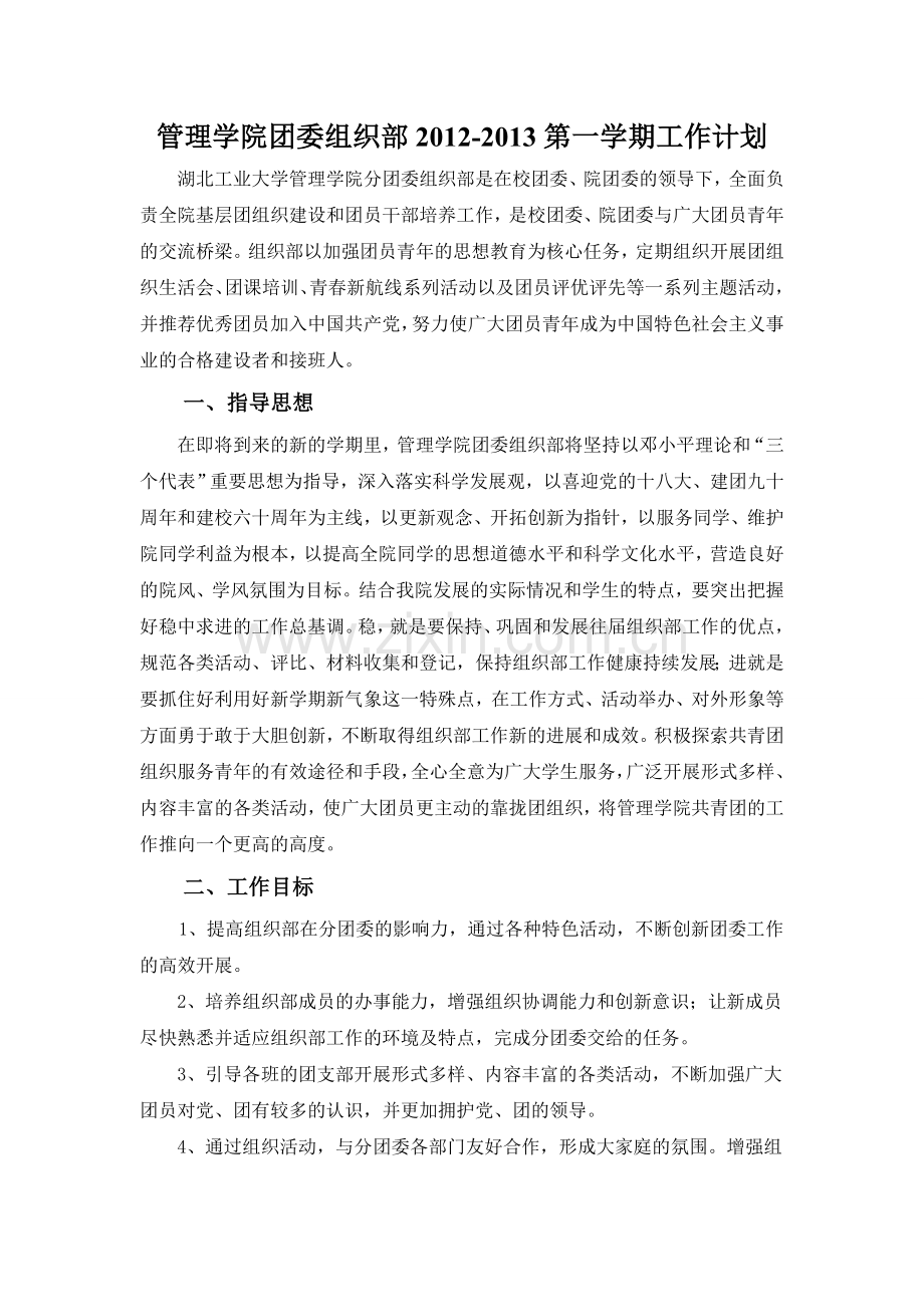 在即将到来的新的学期里,管理学院团委组织部将坚持以邓小平理论和“三个代表”重要思想为指导,深入落实科学发展观,以喜迎党的十八大、建团九十周年和建校六十周年为主线,以更新观念、开拓创新为指针,以服务同学、维护院同学利益为根本,以提高全院同学的思想道德水平和科学文化水平,营造良好的院风、学风氛围为目标。结合我院发展的实际情况和学生的特点,要突出把握好稳中求进的工作总基调。稳,就是要保持、巩固和发展往届组织部工作的优点,规范各类活动、评比、材料收集和登记,保持组织部工作健康持续发展;进就是要抓住好利用好新学期新气象这一特殊点,在工作方式、活动举办、对外形象等方面勇于敢于大胆创新,不断取得组织部工作新的进展和成效。积极探索共青团组织服务青年的有效途径和手段,全心全意为广大学生服务,广泛开展形式多样、内容丰富的各类活动,使广大团员更主动的靠拢团组织,将管理学院共青团的工作推向一个更高的高度。
