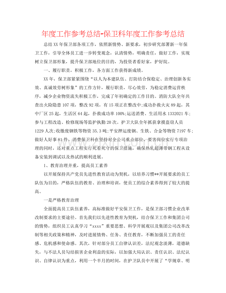 总结XX年保卫部各项工作,依照新情势、新要求,初步研究部署新一年保卫工作,引导全体员工进一步转变观念,认清情势,明确责任,做好工作,实现树立保卫部形象,提升保卫部地位的目的,为投资者看好家,护好院。
