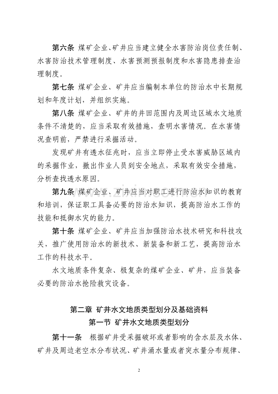第二条 煤矿企业(矿井)、有关单位的防治水工作,适用本规定。