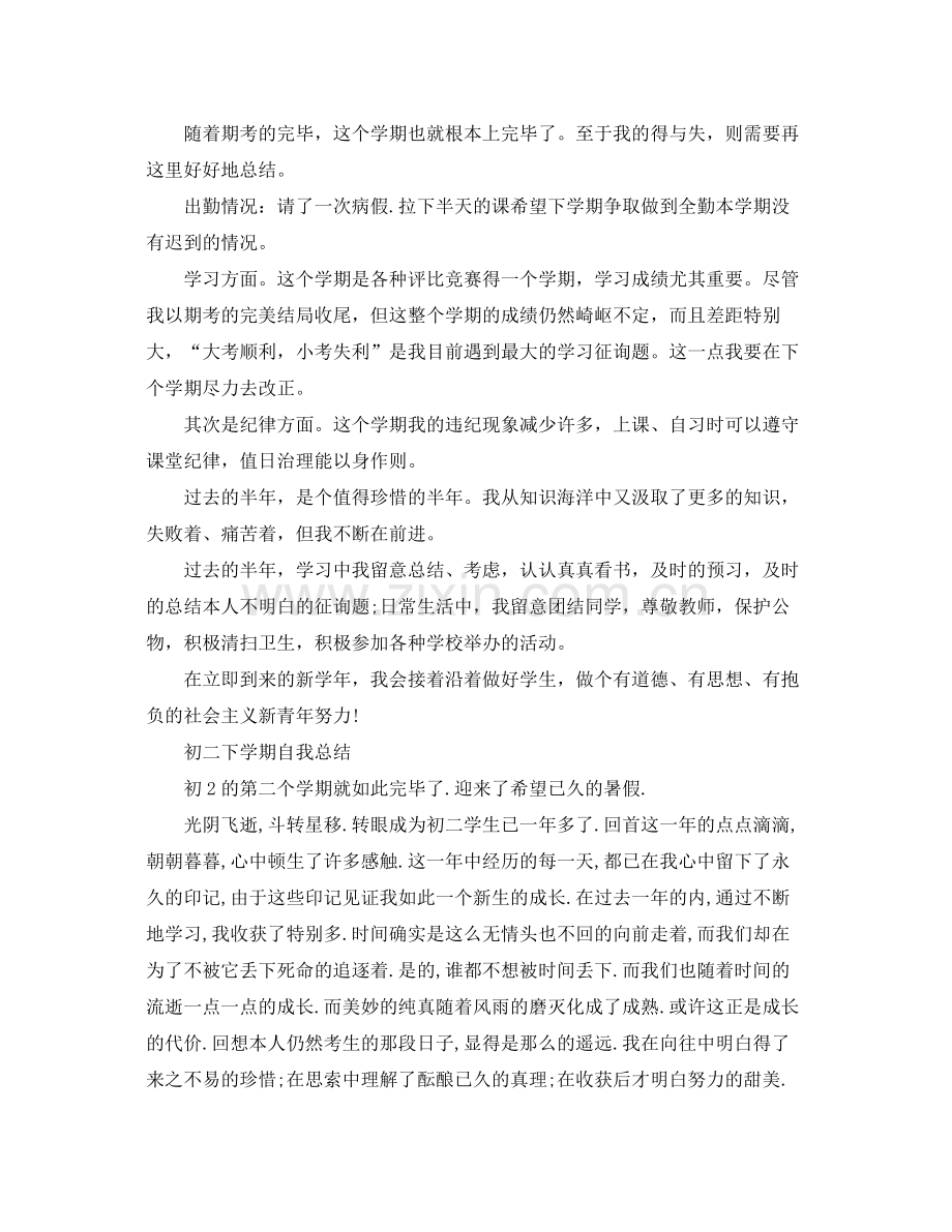 以上是我对初2下学期期末一些方面的个人总结,我将结合这个小结回忆过去,确定今后的开展目的,我对今后充满决心。