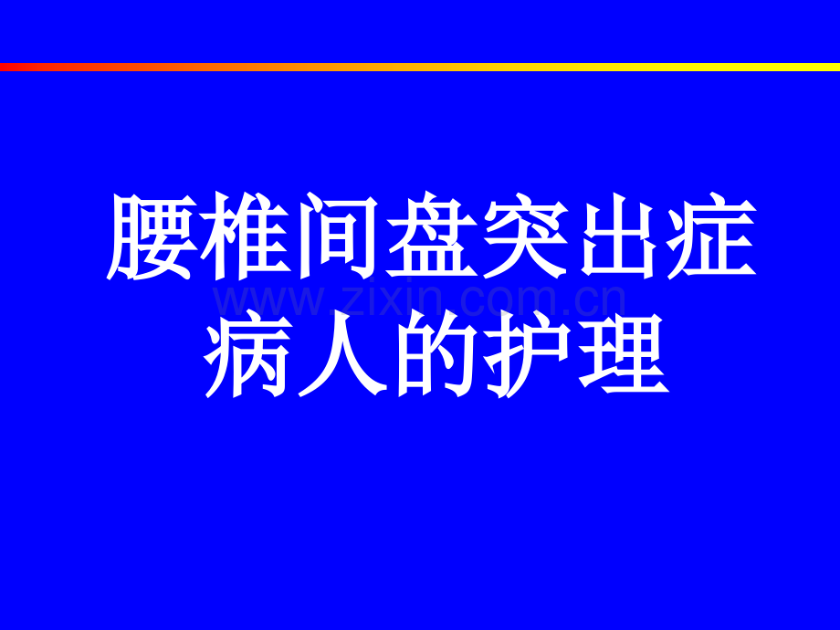 腰椎间盘突出症腰椎间盘突出症病人的护理病人的护理腰椎间盘突出症是指腰椎间盘外层的纤维环破裂,其内部的髓核连同残存的纤维环和覆盖在环上的后纵韧带组织向椎管内或椎间盘的后侧突出,压迫附近的脊神经,是腰腿痛的常见原因之一。好发于20-50岁,男性多于女性。腰椎间盘突出症多发生在脊柱活动度大、承重较大或活动较多的部位,以腰4-5、腰5至骶1最常见,发生率占90%-96%。病因椎间盘退行性变是腰椎间盘突出症的基本病因。其他见于腰部的急、慢性损伤;遗传因素;妊娠等。临床表现本病的主要症状是腰痛伴坐骨神经痛。腰痛多数病人在抬重物、弯腰用力、扭伤或劳累后发病。可突然发生剧烈腰痛,也可以是逐渐加重的隐痛。常局限于腰骶部附近。坐骨神经痛一般先有腰痛的前驱症状,或者与腰痛同时发生多为单侧急性发作时常剧痛难忍活动、弯腰、久坐、久站以及咳嗽、打喷嚏、排便等腹压增加时疼痛加剧马尾神经受压呈间歇性跛行病人每前行一段距离,患肢麻痛难忍,须蹲下休息后方可继续行走。体检:腰部有抗痛性侧弯、平腰畸形、腰前凸消失、腰椎有不对称性活动障碍。局部压痛,并伴有坐骨神经放射性串痛。坐骨神经牵扯试验(即屈颈试验)、直腿抬高试验等阳性腱反射改变、伸趾力减低,感觉减退或过敏治疗非手术治疗早期多采用此法卧床休息很重要,可以减轻体重对椎间盘的压力。屈膝、屈髋可以放松坐骨神经的牵扯力,并减少腰椎前凸,以张开椎间盘后方的间隙,必须卧硬板床休息。急性期应严格卧床3周,包括吃饭、大小便均不可下床,待症状基本缓解后,在围腰保护下离床活动。硬脊膜外腔封闭硬脊膜外腔封闭用1%普鲁卡因10mL加入醋酸强的松龙1-2ml注入硬脊膜外腔,每周1次,2-3次为1疗程。推拿按摩治疗推拿按摩治疗急性期效果显著,慢性期效果较慢。对孕妇、高血压、心脏病人,禁忌做推拿按摩。骨盆牵引骨盆牵引可以拉开椎间盘间隙而使突出的组织复位。牵引重量一般15-20kg,牵引为间断性,每日2-3次,每次30分钟。手术治疗手术治疗保守治疗无效、有明显神经根压迫症状或多次反复发作时,即可考虑手术行椎间盘髓核摘除、化学融合术、椎间盘镜下摘除、人工椎间盘转换术护理评估健康史健康史询问病人起病初期有无诱发因素,如受寒或体力活动时腰部突然扭转、腰部外伤等。了解病人年龄、病情进展情况、既往治疗经过及疗效。因此病多见于中老年人,所以要详细了解病人有无冠心病、高血压、糖尿病和肝肾功能不良等。身体状况身体状况评估病人腰痛的性质、部位和范围了解有无神经根受压的相关并发症状,如腰痛、坐骨神经痛、间歇性趾行。如有,应了解其程度和时间。心理状况心理状况疼痛和感觉异常给病人带来巨大痛苦,严重者影响生理功能,病人常因担心预后而焦虑、烦躁,尤其是疼痛明显和久治不愈的病人。就注意病人的情绪反应,对疼痛的了解程度,家庭社会支持系统。常见保守治疗拔罐牵引蜡疗中频护理问题焦虑与病人对手术治疗的程序不了解及对疾病预后担扰有关自理能力缺陷与下肢疼痛、牵引治疗和神经受压等因素有关舒适的改变与神经受压和肌肉痉挛等因素有关排泄型态的改变与马尾神经受压和长期卧床有牵引失效及效能降低的可能与病人缺乏维持有效牵引知识和不配合有关有皮肤完整性受损的危险与局部长期受压、牵引有关潜在并发症肌肉萎缩、神经根粘连护理目标病人自诉焦虑消失或明显减轻病人在住院期间的基本生活需要能够得以满足,最大限度地恢复自理能力病人自诉舒适感增加病人的牵引治疗达到预期效果病人的便秘、尿潴留症状解除,重新建立排便形态病人的皮肤完整性维持良好,未发生压疮、病人获得锻炼知识,无明显的肌肉萎缩和神经要粘连护理措施心理护理心理护理帮助病人尽快适应环境,保持最佳状态,以利于疾病的恢复。术前多与病人交流,了解其心理状态。经予安慰、解释,对病人的疑部要及时经予解答,向病人解释手术的重要性和手术后效果,介绍治愈病例,使其保持良好心理状态,增强战胜疾病的信心,积极配合治疗。生活护理生活护理,满足生活需要关心体贴病人,当病人下肢感觉减退时,应注意预防烫伤、冻伤、碰伤。手术耗能,饮食种类应多样化,不宜强调过多忌口,应给予富于营养、易消化的食物,如肉类、鱼汤、骨汤(以松骨质为佳)、蔬菜、水果等。多吃一些含钙量高含钙量高的食物,如牛奶,奶制品,虾皮、海带等。疼痛护理耐心倾听病人诉说,细心观察病人的反应,并对病人的耐受力及正确处理方法加又肯定和赞扬,可使病人感到被理解,取得病人的信任,配合治疗。急性期应绝对卧硬板休息,又解除肌肉痉挛,减少椎间盘所承受的压力。给予热敷和理疗,教会病人放松的技巧,必要时应用镇痛药。3周后带腰围起床活动,3个月内不能弯腰。下床时给予腰围制动,以预防脊柱扭曲。改善病人排泄形态多饮水,进食富含纤维素的食物,预防便秘。训练反射性排便,养成定时排便。指导病人以最理想的姿势排尿。功能锻炼急性期(2周)后进行腰背肌锻炼。手术前护理完成骨科手术前常规准备;加强营养,增强机体的抵抗力。手术后护理卧硬板床,平卧24小时不要翻身以压迫伤口,帮助止血。因病人易发和呼吸道梗塞、通气不足、呕吐、误吸或循环功能不稳定,应严密心电