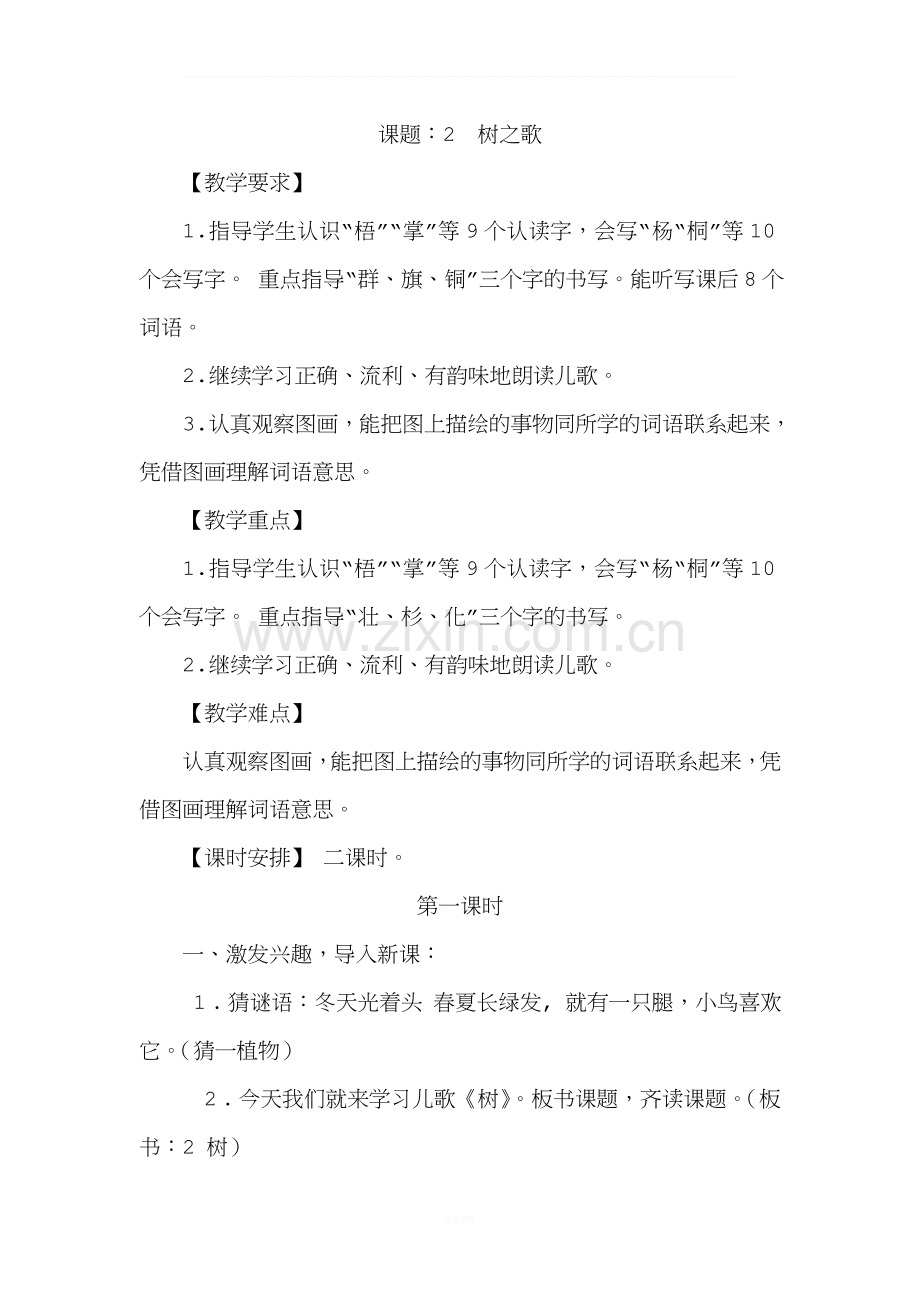 2﹒今天我们就来学习儿歌《树》。板书课题,齐读课题。(板书:2 树)