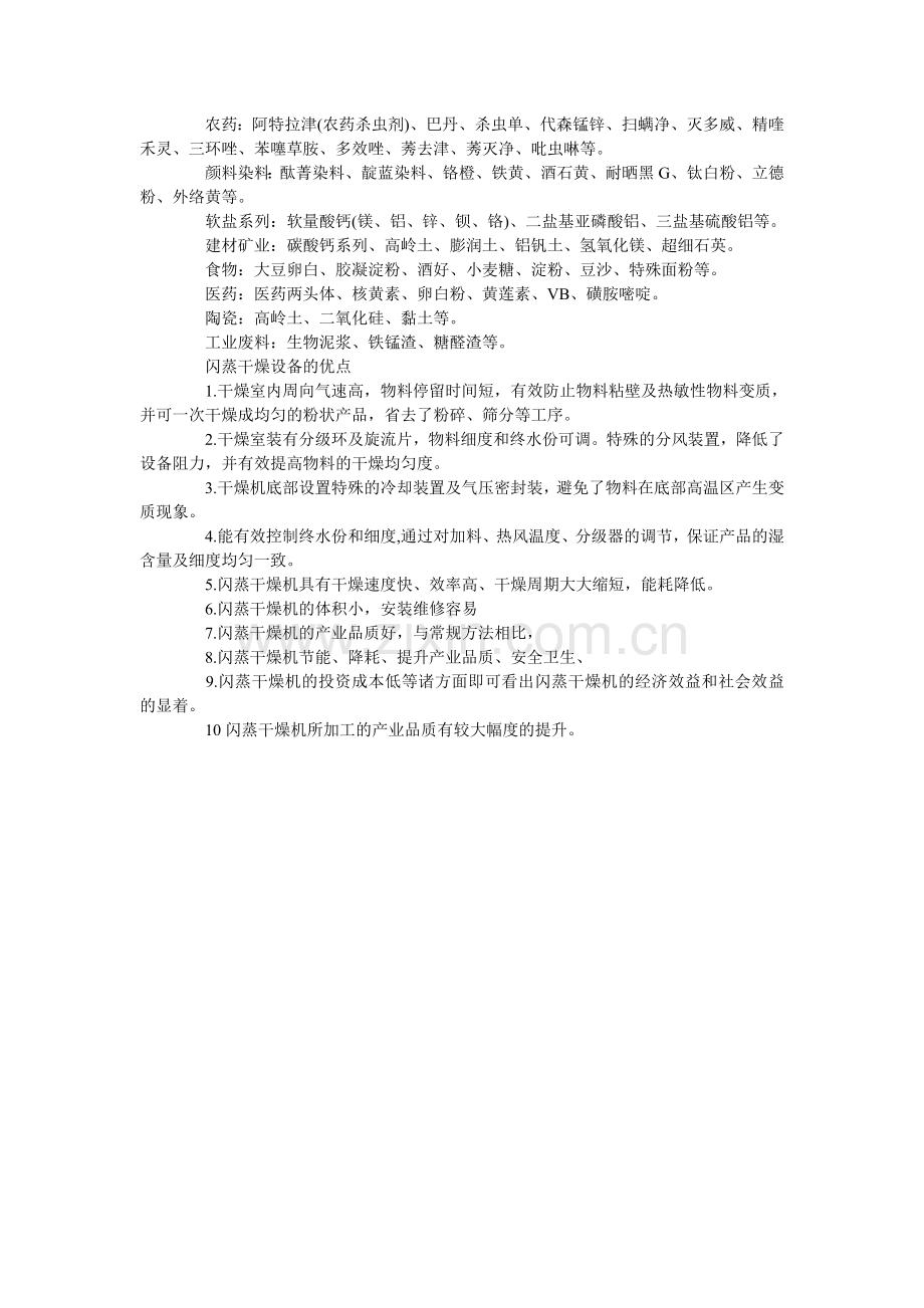 适用于闪蒸干燥设备的物料有: