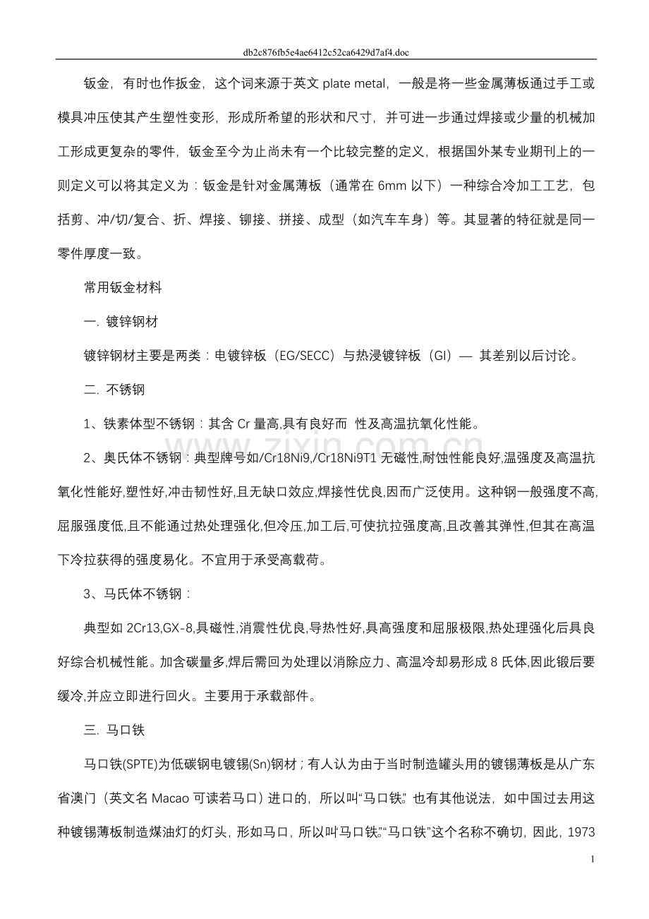 常用钣金材料