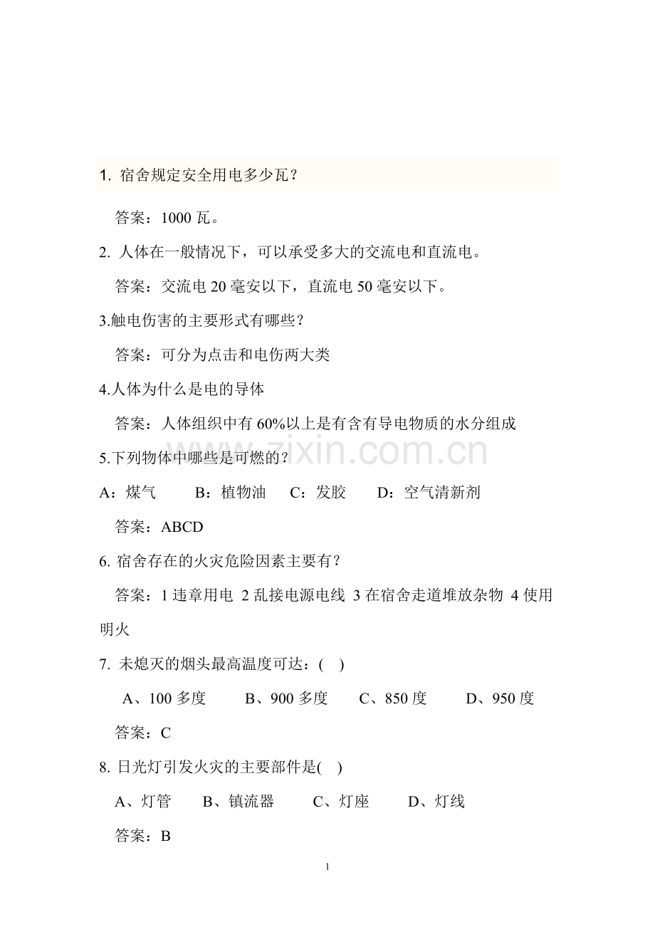 答案:1违章用电 2乱接电源电线 3在宿舍走道堆放杂物 4使用明火