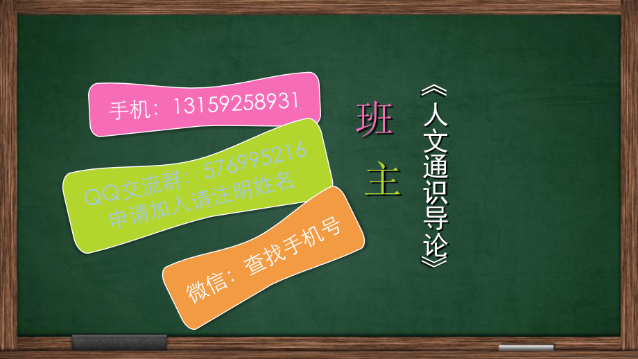 单击此处编辑母版标题样式,单击此处编辑母版文本样式,第二级,第三级,第四级,第五级,*,*,3第一讲 导语:人文人类社会的文化,手机:,13159258931,QQ,交流群:,576995216,申请加入请注明姓名,微信:,查找,手机号,班,主,人文通识导论,人文通识导论,课程名称,本课程学分:,2,安排1,5,讲,每讲2课时,共3,0,学时,教学形式:课内教授为主,课外自学为辅,考核办法:,平时小论文(,3,讲选一次)共占总成绩4,5,%,期末大论文(试卷)占总成绩的,55,%,教学时间:教学周第,4-18,周,每周一第,9,、,10,节,教学地点:厚德大厦,207,教学对象:,2015,、,2016,级选修同学,99,名,人文,通识,导论,人类社会的文化,也称引论,将涉及内容很广的人文做概括性介绍,不会有非常深入的分析,从而对,人文通识教育,有一个概括的了解,“通”,:,通达、贯通、融会于一炉,。,“识”,:,见识,即整合的认知。,简单的讲,通识教育就是一种自由,符合自身特点的一种教育方式。源于自由教育的通识教育是带有普遍意义的人生教育,目的是使学生得到健康发展,培养全面发展的、敏于探索、善于批判、勇于创新、乐于奉献的“全人”。,作为一种教育理念,通识教育是关于大学教育的价值观问题,即回答大学为何而办、为谁而办、提供什么样的教育、培养什么样的人才等问题。,人文通识导论,第一讲,导语 人文是人类社会的文化,一、教学目的,二、教学内容,三、教学思路,导,语,人文通识导论,四、,作业,布置,一、教学目的,(呼唤人文精神),人文知识,1,人文精神,2,人文与天文、地理相对而言,均出自易经,与人道(做人的道理)相通。,人文,重视人的文化,重视人,尊重人,关心人,爱护人。,指人类文化中先进的、科学的、优秀的、健康的部分。,以人文精神作为大学通识教育的基础。,掌握人文知识,呼唤人文精神,人文通识导论,文学,01,历史,02,哲学,03,宗教,04,法律,05,美学,06,二、,教学内容,(密切相关的人文知识),人文通识导论,音乐,07,舞蹈,08,美术,09,书法,10,电影,11,二、,教学内容,(密切相关的人文知识),人文通识导论,传媒,12,民俗,13,礼仪,14,二、教学内容,(密切相关的人文知识),(每个知识点,2,课时,共,28,课时,,+,导语共,30,课时),人文通识导论,三、,教学思路,(思考三个问题),文化,1,、文化符号(,?),2,、文化价值观,(,?),3,、文化规范,(,?),基础,核心,内容,人文通识导论,辞海:“人文指人类社会的各种文化现象”。,文化是人类或者一个民族、一个人群共同具有的符号、价值观及其规范,文化符号,1,2,3,力图,捕捉解释意义的各种文化符号,是本课首要任务,。,文化都有自己表情达意、塑造意象的符号,符号是被认为携带意义的感知,第一问题:文化符号在哪里?,人文通识导论,人凭视、听、触、嗅、味感觉到的存在,捕捉文化符号示例,1,文学,:,字、词、句、篇,.,2,舞蹈:肢体动作、面部表情,.,3,美术:线条、色彩、构图,.,4,音乐,:曲调、节奏、和声、力度、速度、调式,.,5,书法,:,书体笔法、结构,、,章法,.,1,、,文化符号,在哪里,人文通识导论,捕捉文化符号示例,6,历史,:,文字、口语、遗迹,.,7,哲学:理性思考方法,.,8,宗教:制度、教团、教仪、教义,.,9,法律,:立,法机关颁布、国家强制力实施,.,10,美学,:,感性的理念,、,解释美,.,1,、,文化符号,在哪里,人文通识导论,11,电影,:,视觉形象、镜头组接、银幕空间时间,、,音画,.,传媒:物质工具、携带和传递信息,.,民俗:群体、多次、实施同样内容,传承贴心文化,.,礼仪,:,约定俗成,、,程序方式,、,律己敬人,.,12,13,14,12,11,捕捉文化符号示例,1,、,文化符号,在哪里,人文通识导论,文化,价值观,1,2,3,力图判别,各种文化,的好与坏,是本课程重要任务,。,包含两个任务:,判定好的文化;,批评不好的文化,有限的定义:,一群人认为有益的、正确的或 有价值的信条或特点,第二问题:文化价值观在哪里?,人文通识导论,积极的,文化价值,1,文学,:体现积极的,思想和精神价值,2,舞蹈:反映社会生活,传递审美情趣和理想,3,美术:,反映自然和社会生活,,传递,思想,情感,4,音乐,:,传递、触动人的美好情感,5,书法,:给人以美感,2,、文化价值观,在哪里,人文通识导论,积极的,文化价值,6,历史,:,以史为鉴,借古论今,7,哲学:解释世界,8,宗教:传播思想观念及感情体验,9,法律,:,规范人、事、物间的关系,10,美学,:,解释美,人文通识导论,2,、文化价值观,在哪里,积极的,文化价值,11,电影,:,反映社会生活,传媒:携带和传递信息,民俗:传承群体认同的文化,礼仪,:,律己敬人,达到悦人悦己,12,13,14,12,11,人文通识导论,2,、文化价值观,在哪里,文化规范,1,2,3,逐步掌握,各种文化,规范,是本课最终目标,。,每种,文化,本身,都有,各自不同层面的规范,定义:,规:尺规;范:模具,,,分别对物、料约束,。,合为“规范”,成为对思维和行为的约束力量。,第三问题:,文化规范有哪些,人文通识导论,文化规范三个须知,文化总规范:体现有积极意义的先进价值观,A,有些文化本身就是规范:法律,B,在文化大规范下制定小规范,,如:为满足音乐的悦耳,,曲调、节奏、和声以及力度、速度、调式、音色等符号都,有各自,的,小,规范,。,C,人文通识导论,本课程,期末成绩为零的,“,红牌,”,1,、未按时完成平时作业或作业作弊的,合计达,2,次。,2、,课堂缺席(含请假),达6节课的(迟到、早退,超过5分钟按旷课计),3、违反课堂纪律达5次的,如上课玩手机、无特殊理由睡觉或讲话影响教学不停劝告的等等。,1,、教学目标,呼唤