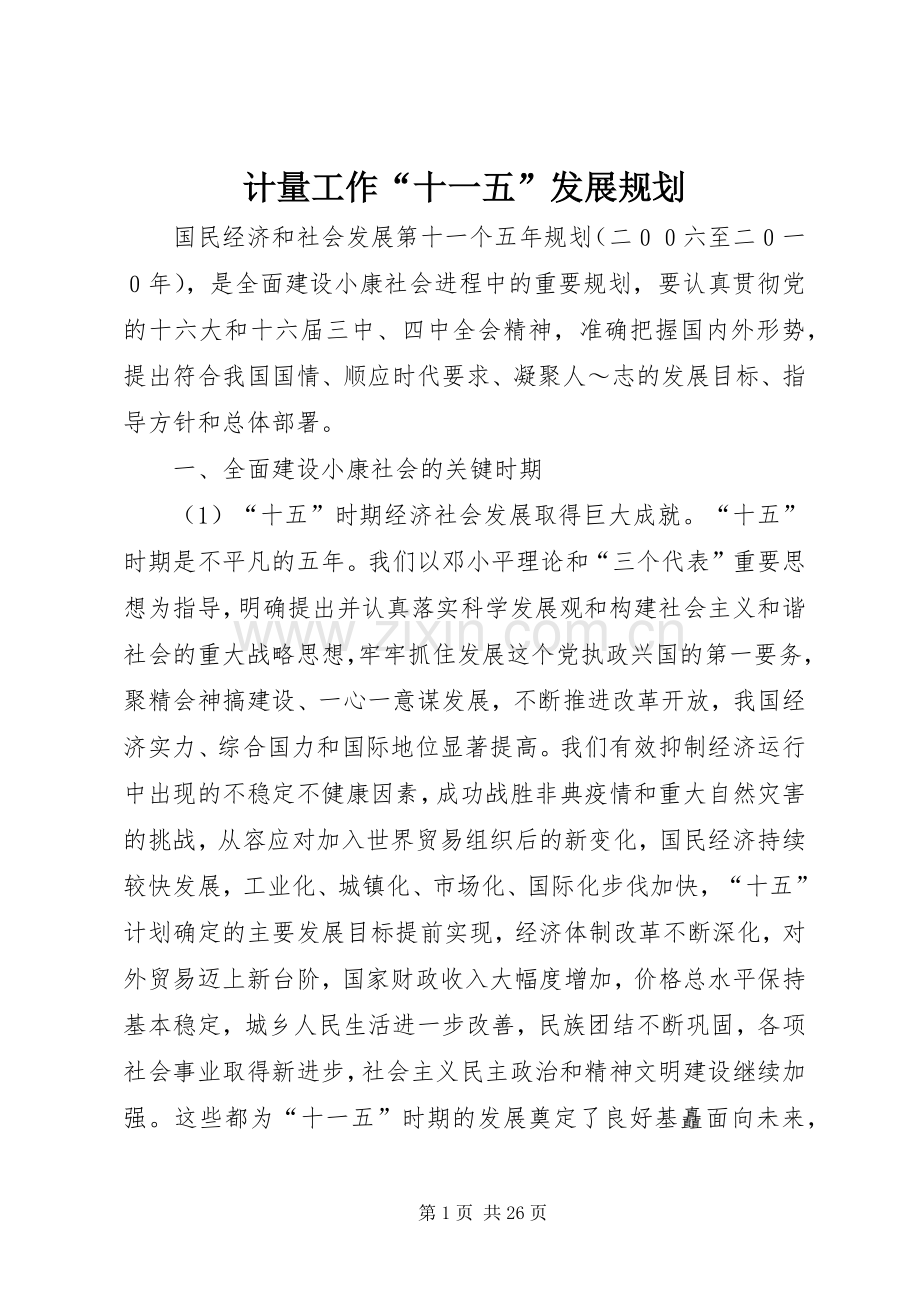 计量工作“十一五”发展规划