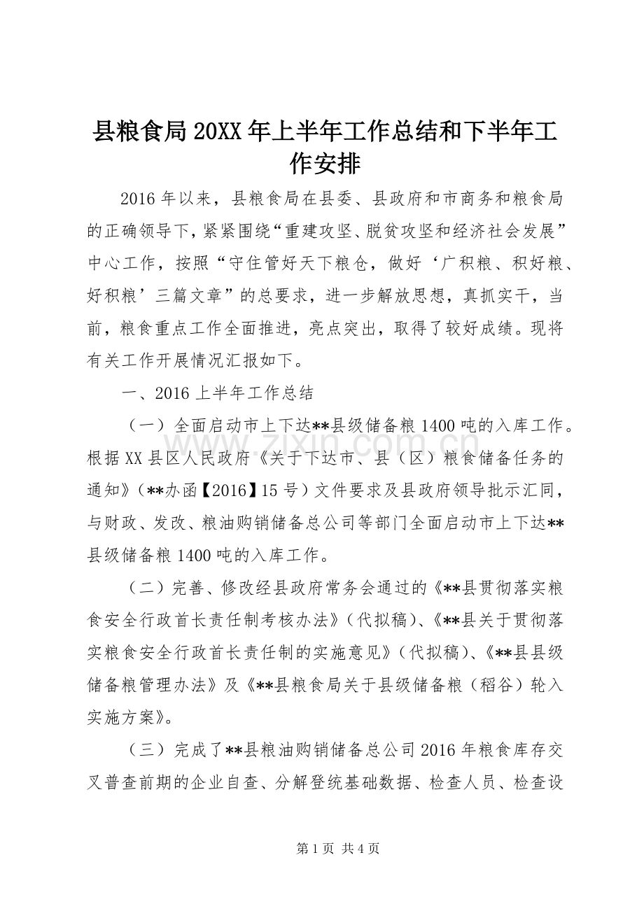 县粮食局20XX年上半年工作总结和下半年工作安排