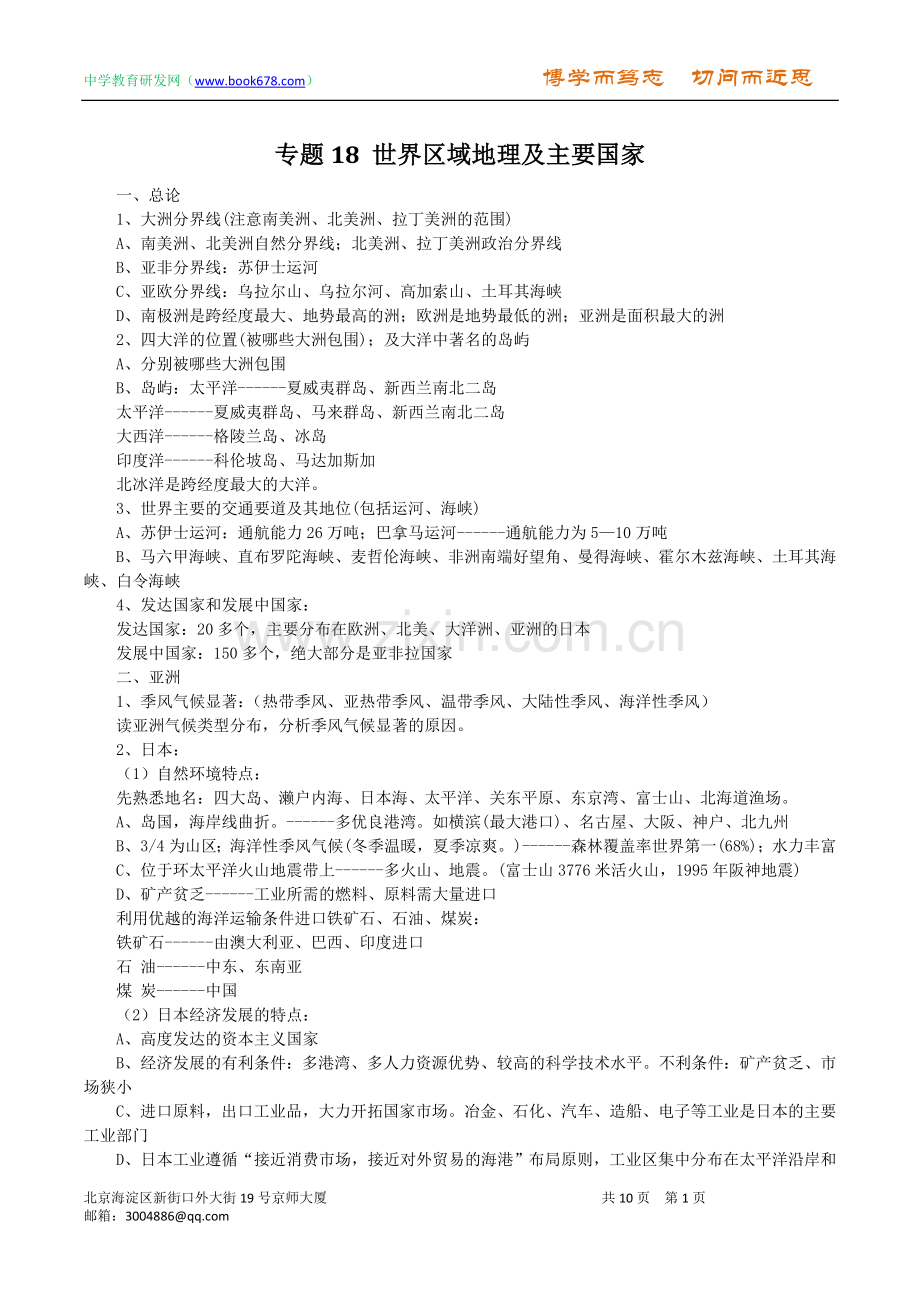 2、四大洋的位置(被哪些大洲包围);及大洋中著名的岛屿