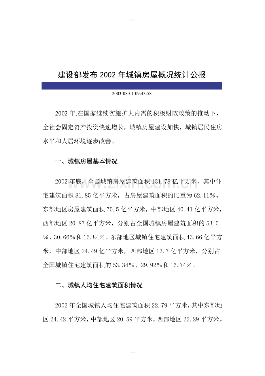 <p>建设部发布2002年城镇房屋概况统计公报