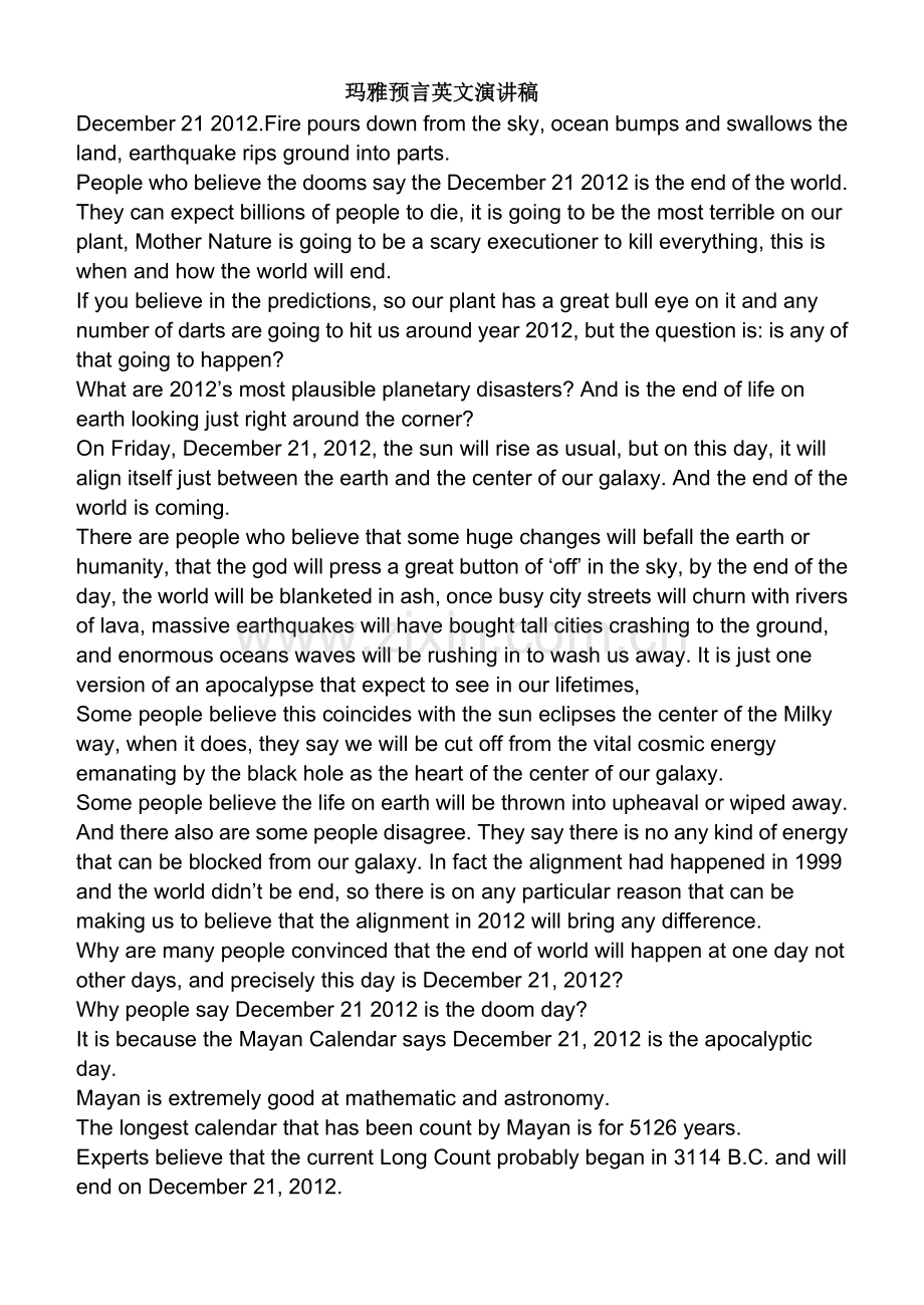玛雅预言英文演讲稿
