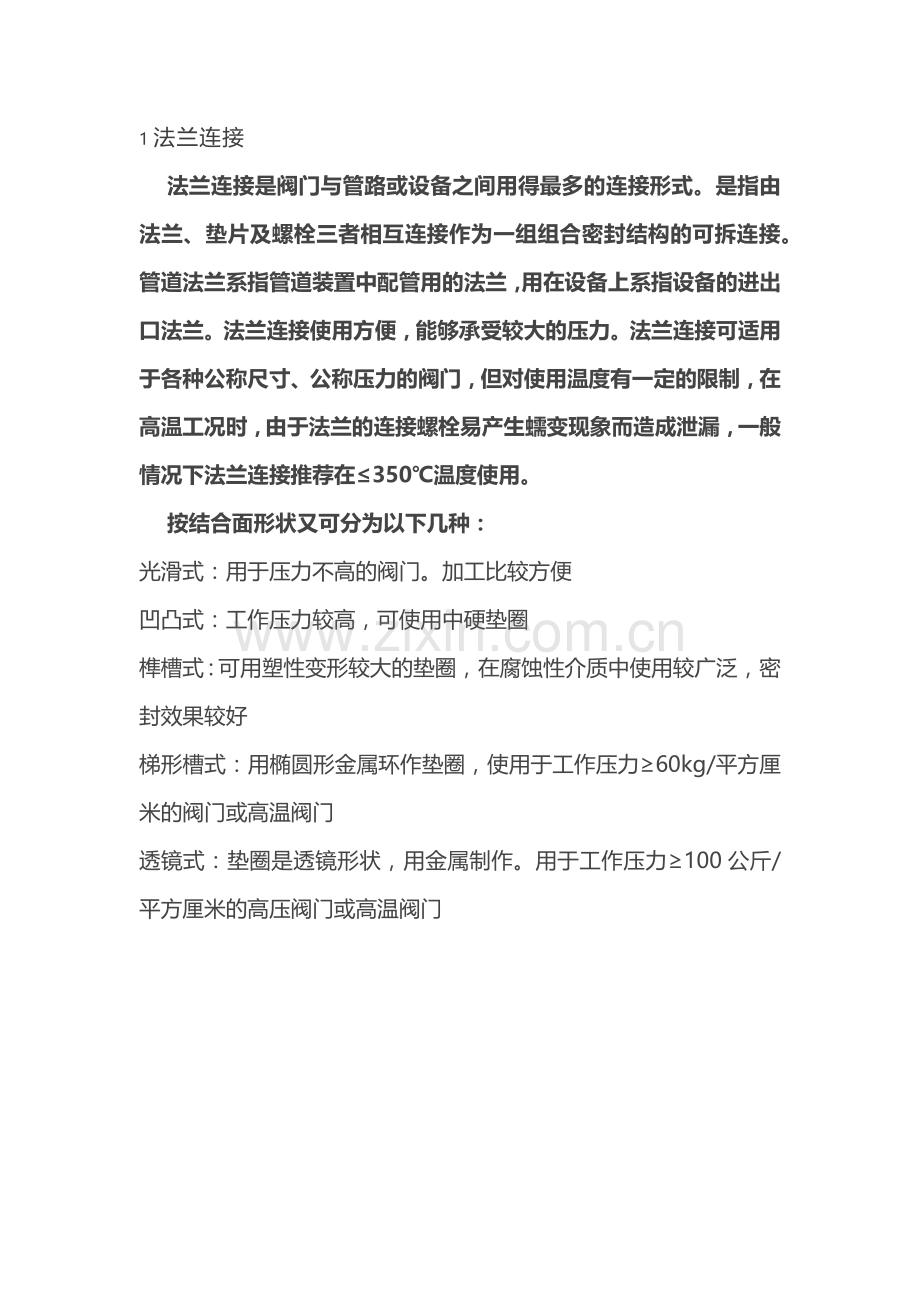 其他的阀门连接形式还很多,例如有的不必拆除的小阀门,跟管子焊接在一起;有的非金属阀门,采用承插式连接,等等。阀门使用者要根据具休情况具体对待 。